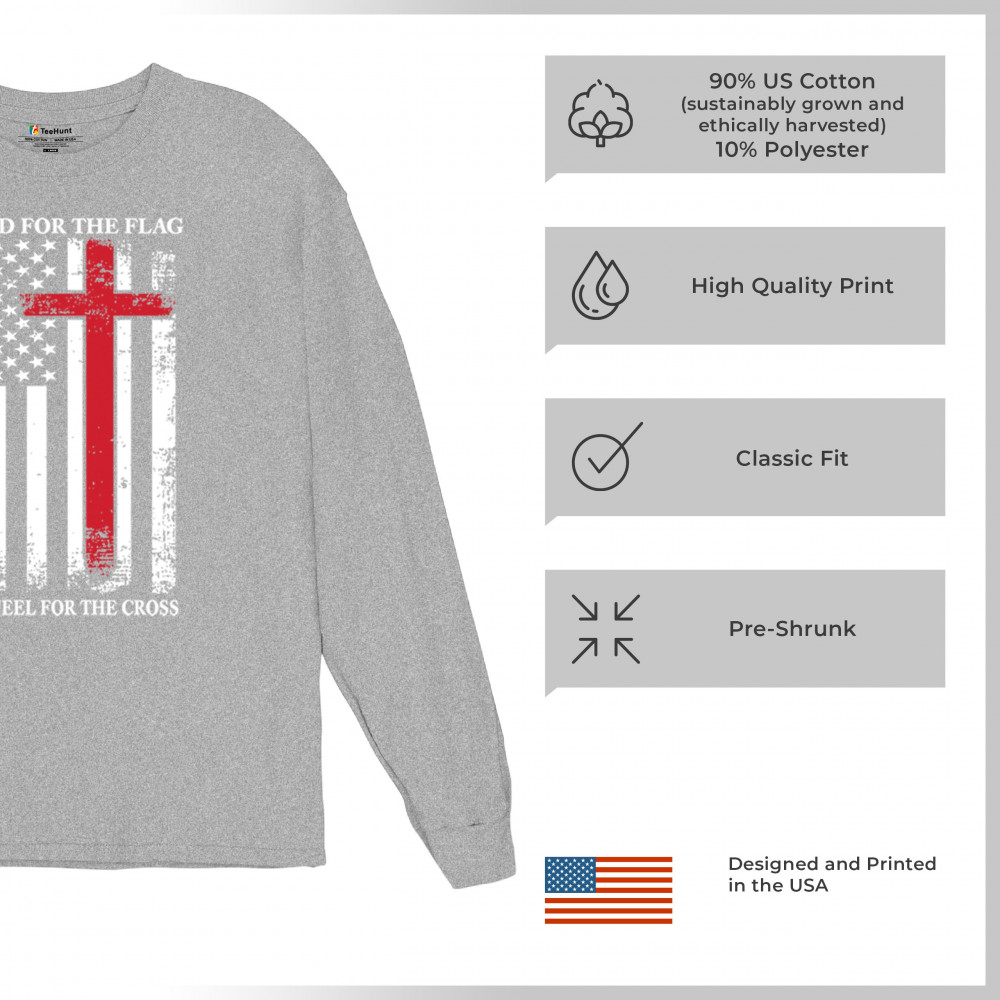 Wrap yourself in the spirit of patriotism and faith with our Stand for the Flag Kneel for the Cross design. This isn't just any Trump shirt—it's a symbol of unwavering support for American values. Featuring the iconic American flag intertwined with the Pu