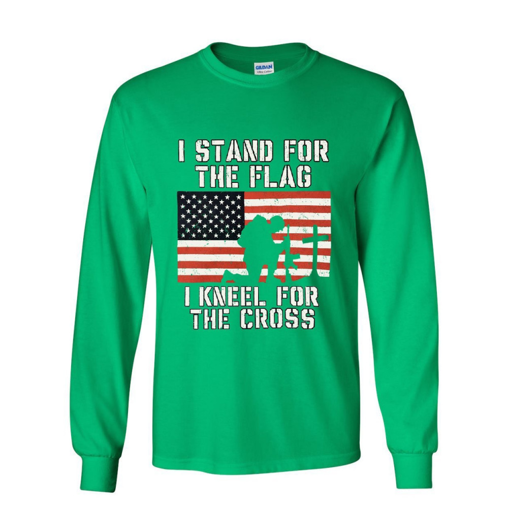 I STAND FOR THE FLAG I KNEEL FOR THE CROSS long sleeve tee patriotic military green