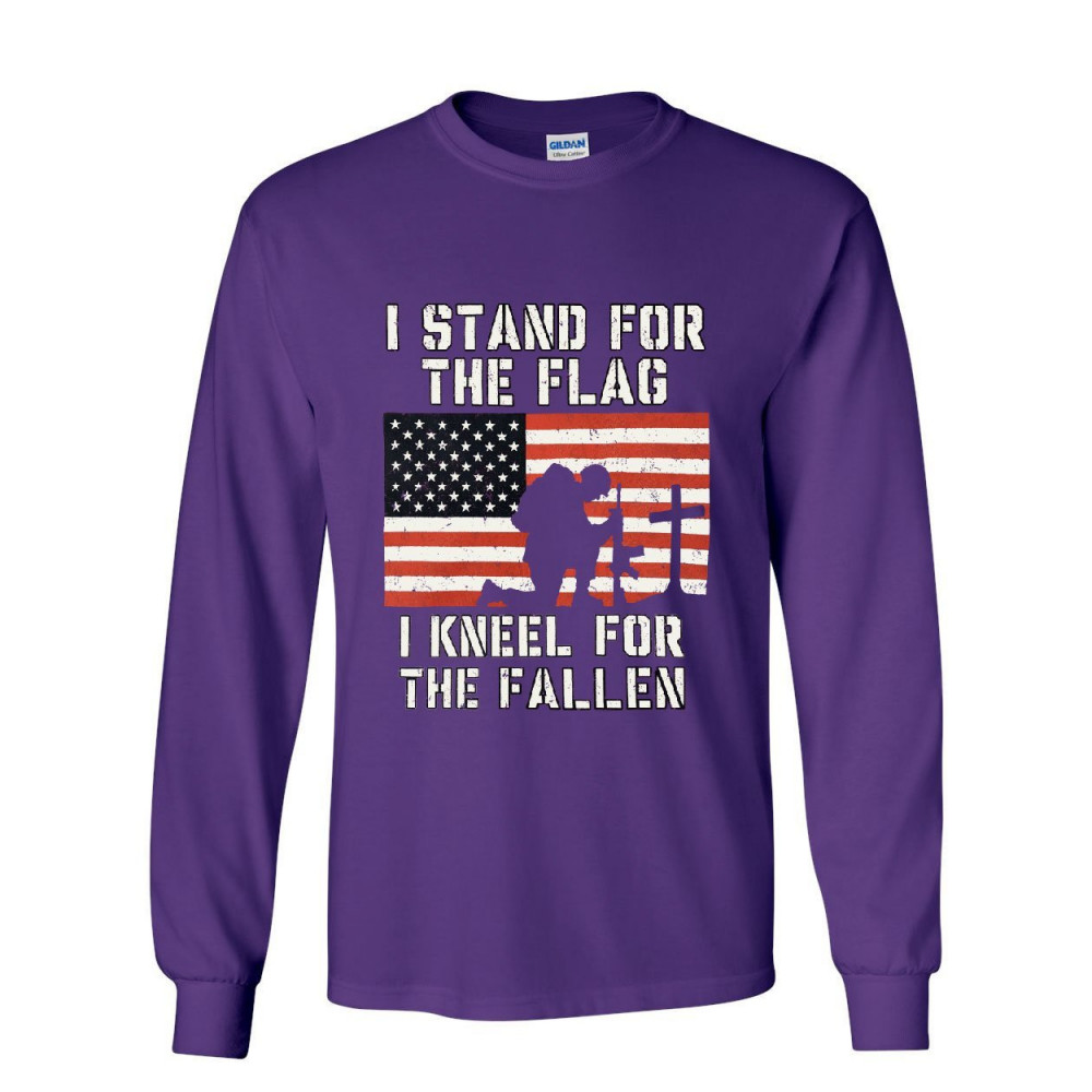 I STAND FOR THE FLAG I KNEEL FOR THE FALLEN long sleeve tee patriotic military purple