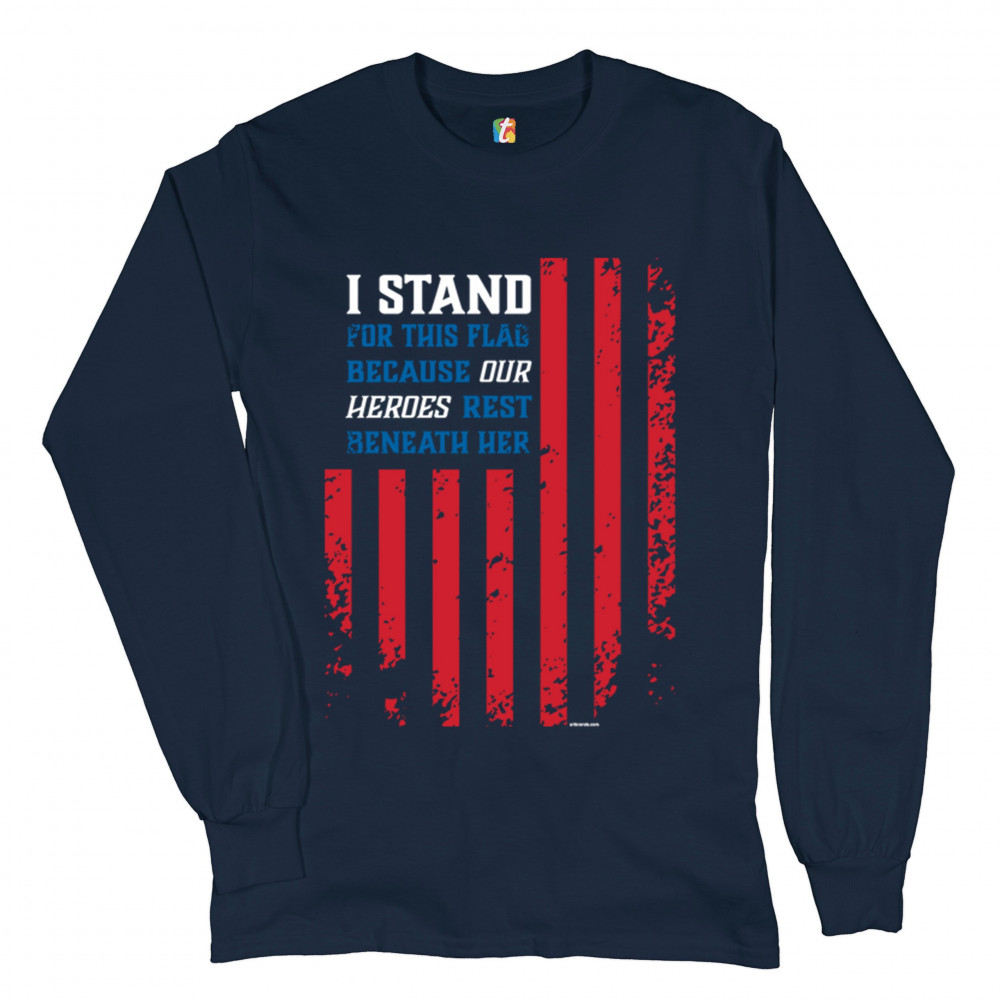 I STAND FOR THIS FLAG long sleeve t-shirt patriotic veteran's day american flag navy blue