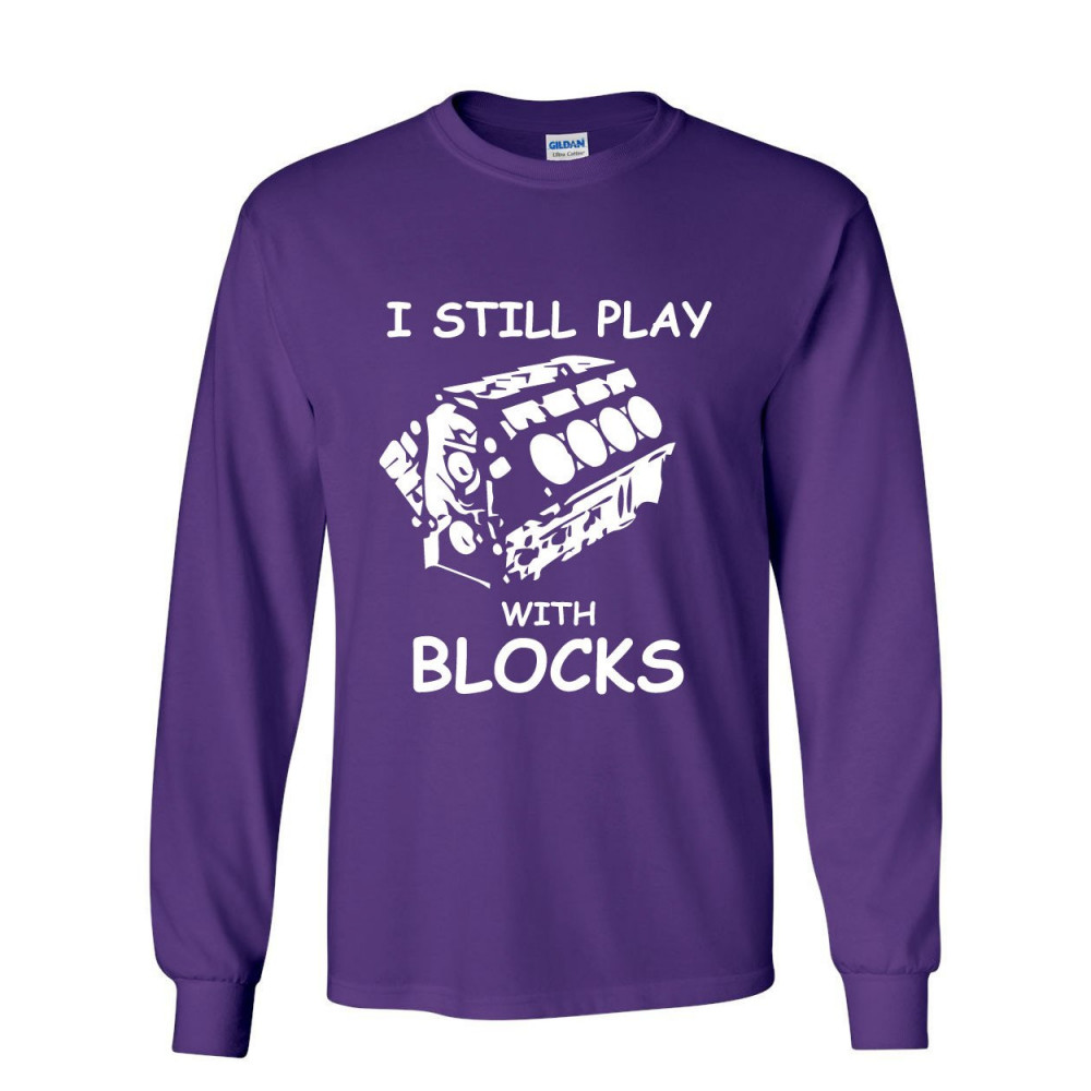 I STILL PLAY WITH BLOCKS long sleeve t-shirt funny car mechanic engine purple