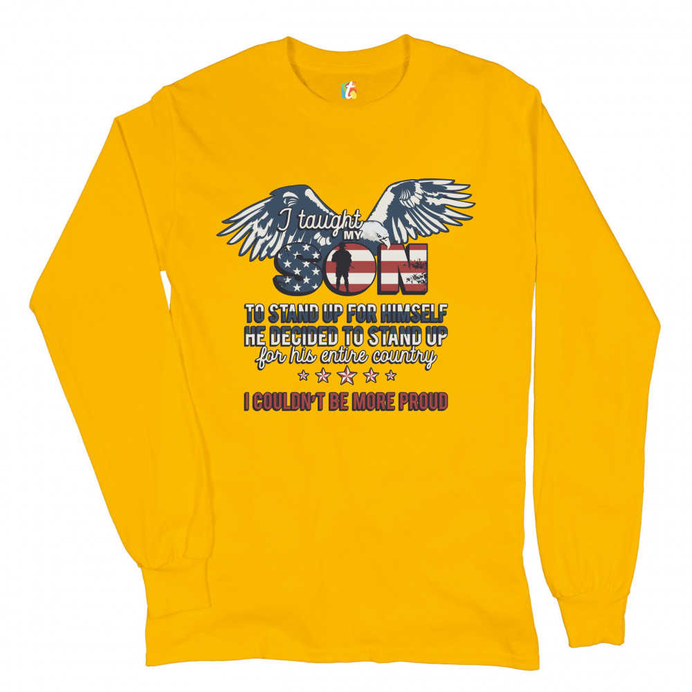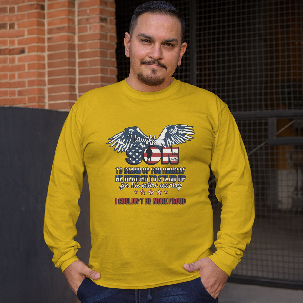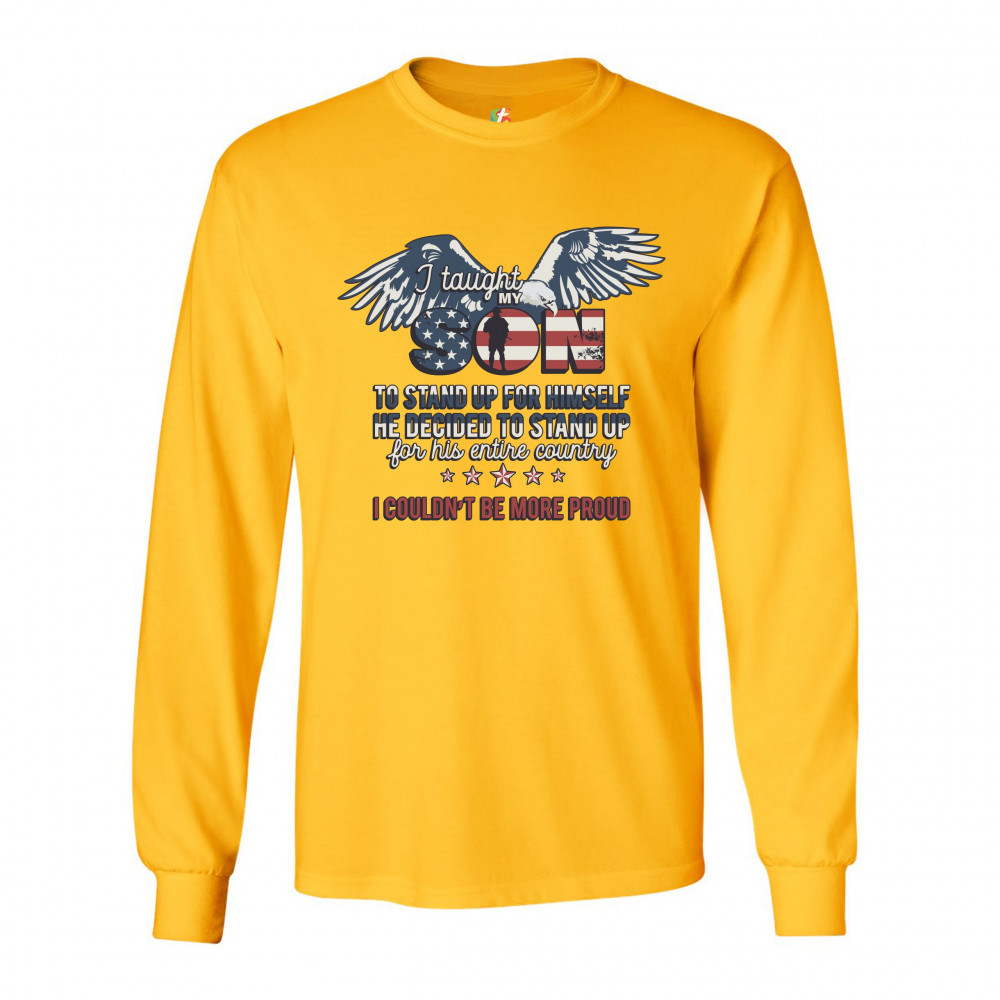 I TAUGHT MY SON TO STAND UP FOR HIMSELF long sleeve t-shirt military patriotic yellow
