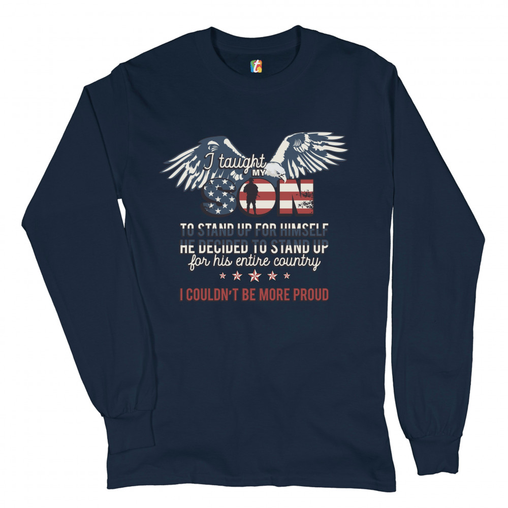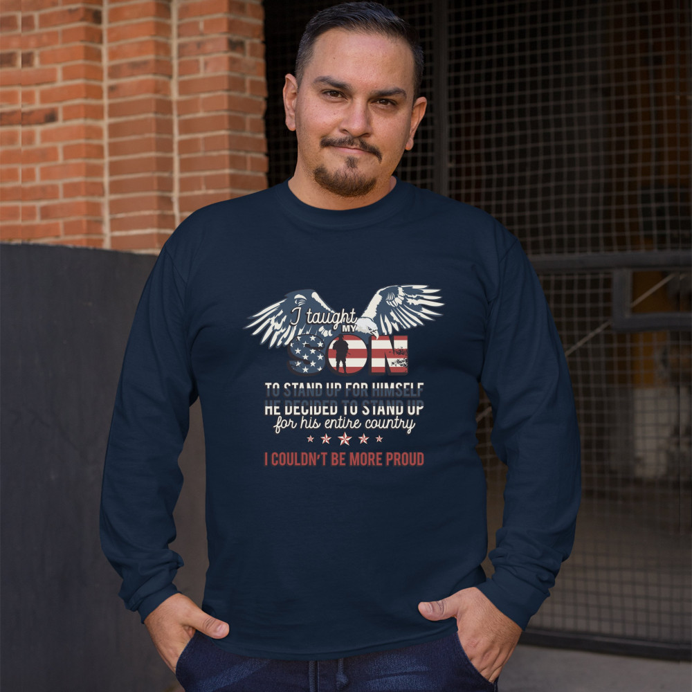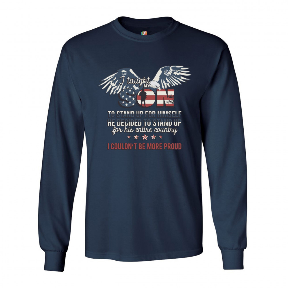I TAUGHT MY SON TO STAND UP FOR HIMSELF long sleeve t-shirt military patriotic navy blue