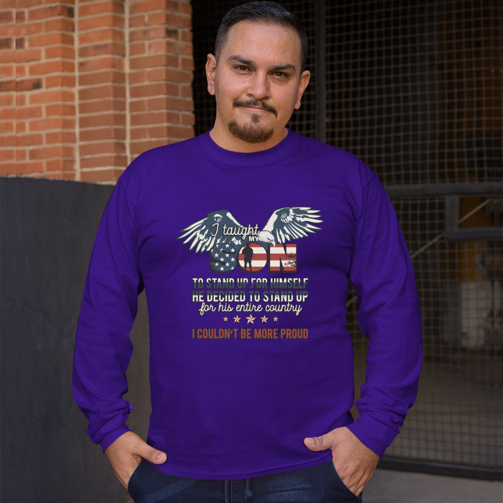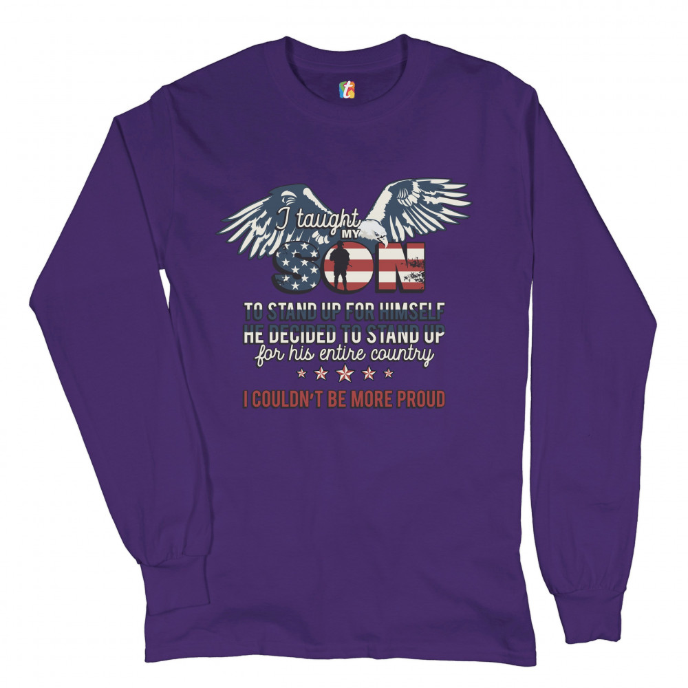 I TAUGHT MY SON TO STAND UP FOR HIMSELF long sleeve t-shirt military patriotic purple