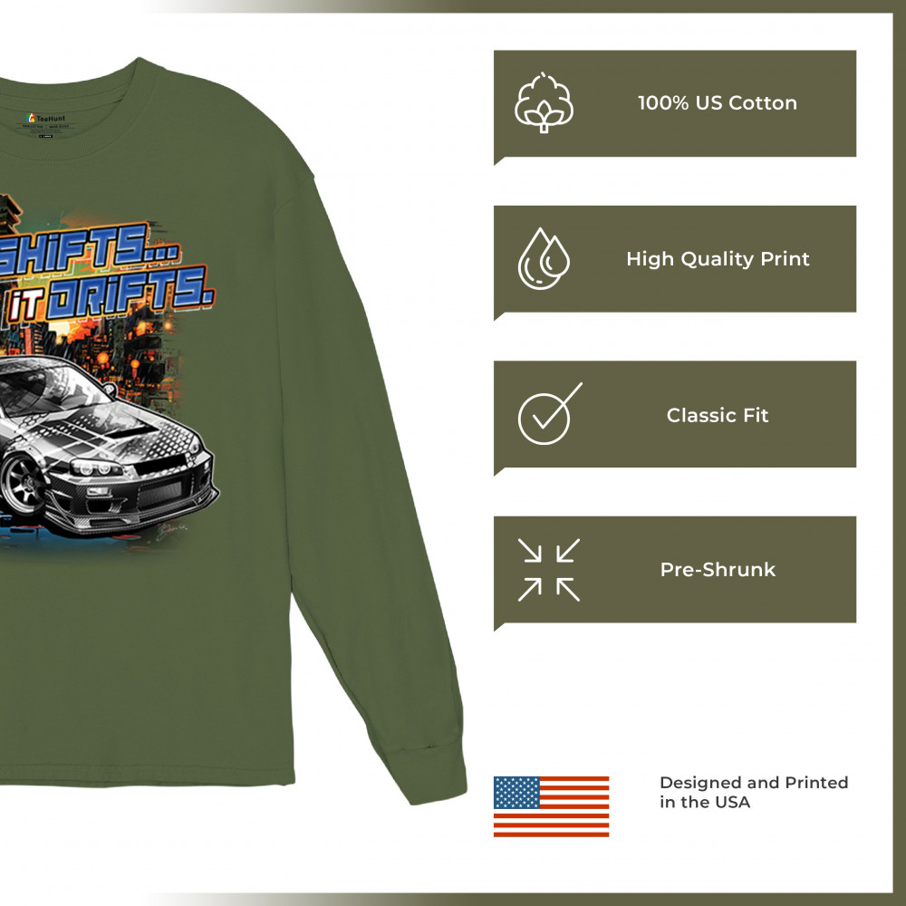 Dive into the world of high-speed drifting with our "If It Shifts, It Drifts" design. Featuring a detailed car against a vibrant cityscape, this is perfect for car enthusiasts and racing fans. Made from premium, soft fabric, it offers superior comfort and durability for all-day wear. Ideal for car shows, racing events, or casual outings, this design lets you express your love for the thrill of the drift in style. It’s also a fantastic gift for any car lover, adding a dynamic touch to their collection.
