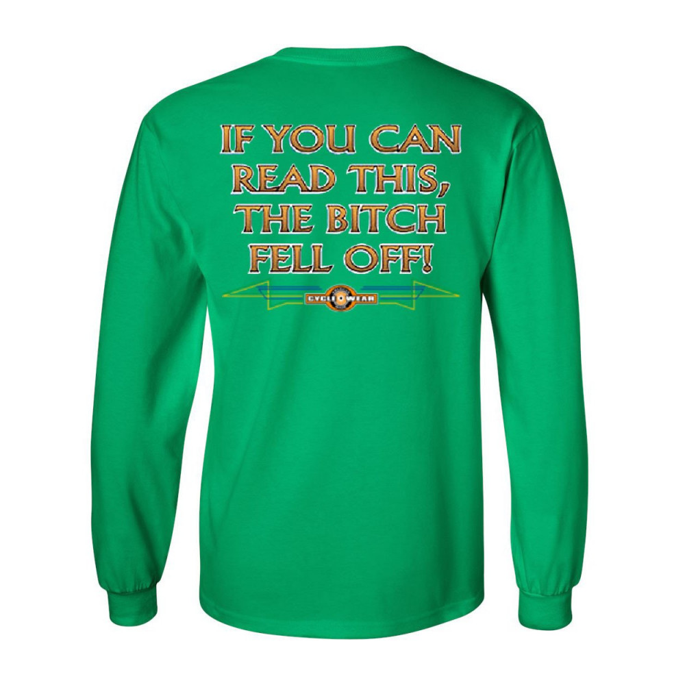 IF YOU CAN READ THIS, THE BITCH FELL OFF long sleeve tee funny biker green