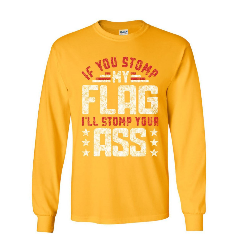 IF YOU STOMP MY FLAG long sleeve t-shirt defend american flag patriot usa tee yellow