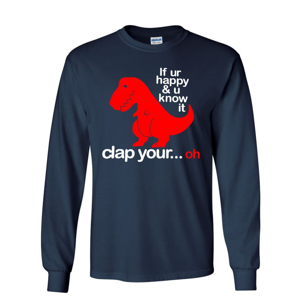 IF YOU'RE HAPPY AND YOU KNOW IT long sleeve t-shirt t-rex fail funny dino tee navy blue