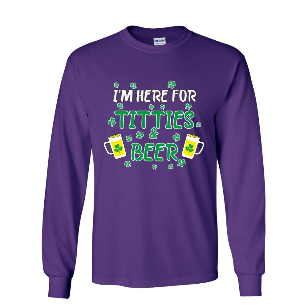 I'M HERE FOR TITTIES & BEER long sleeve t-shirt st patrick's day shenanigans tee purple