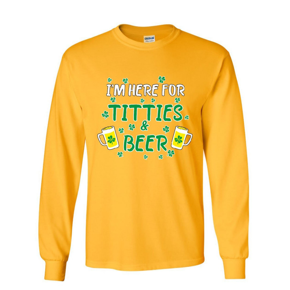 I'M HERE FOR TITTIES & BEER long sleeve t-shirt st patrick's day shenanigans tee yellow