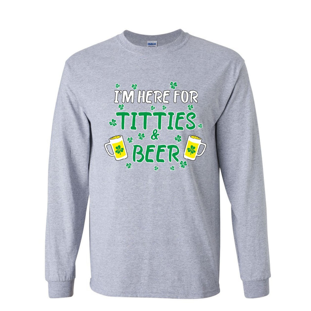 I'M HERE FOR TITTIES & BEER long sleeve t-shirt st patrick's day shenanigans tee gray