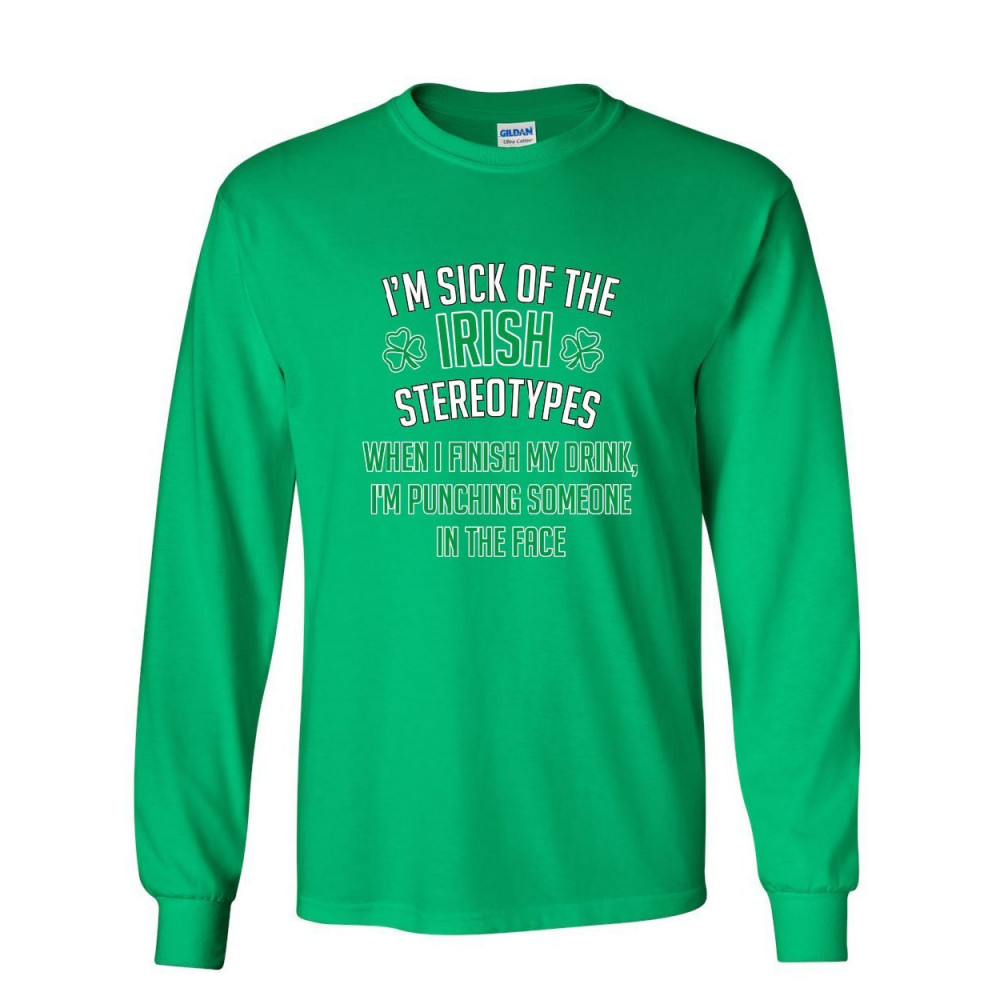 SICK OF THE IRISH STEREOTYPES i'm sick of irish stereotypes long sleeve t-shirt st. patrick's day beer pub tee green