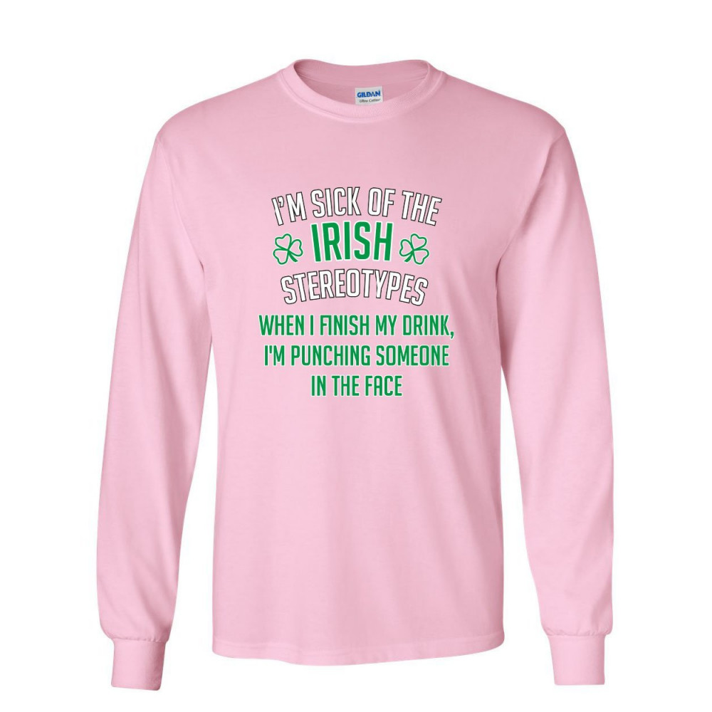 SICK OF THE IRISH STEREOTYPES i'm sick of irish stereotypes long sleeve t-shirt st. patrick's day beer pub tee light pink