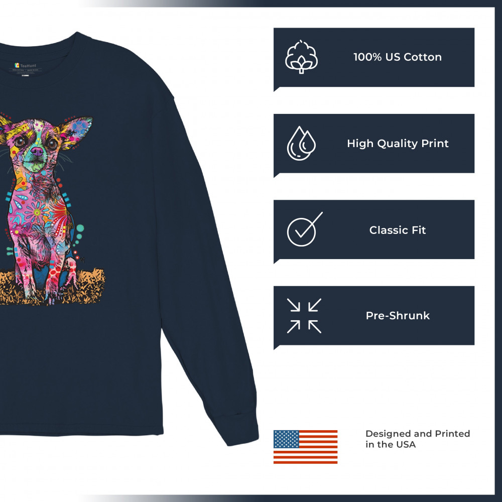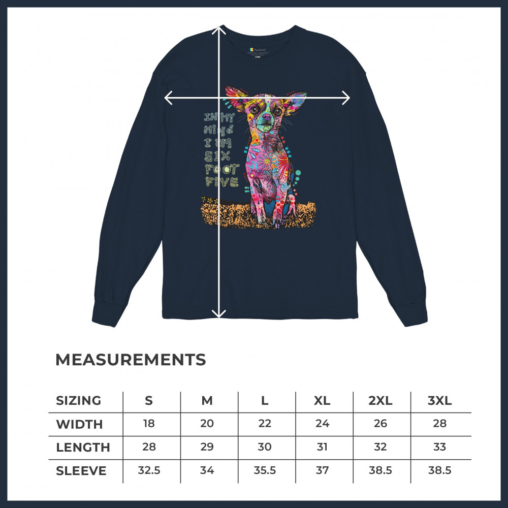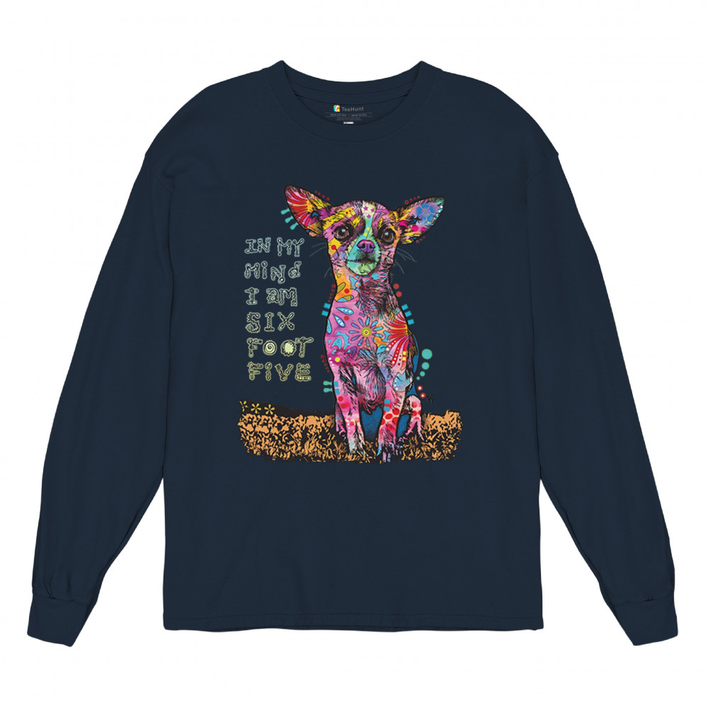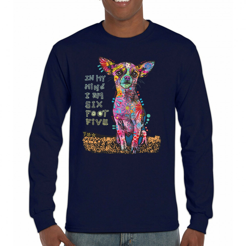 IN MY MIND I'M SIX FOOT FIVE long sleeve t-shirt dean russo funny chihuahua navy blue