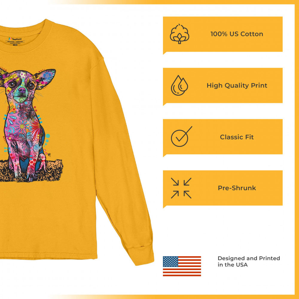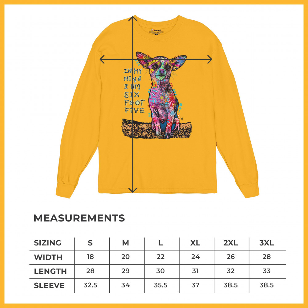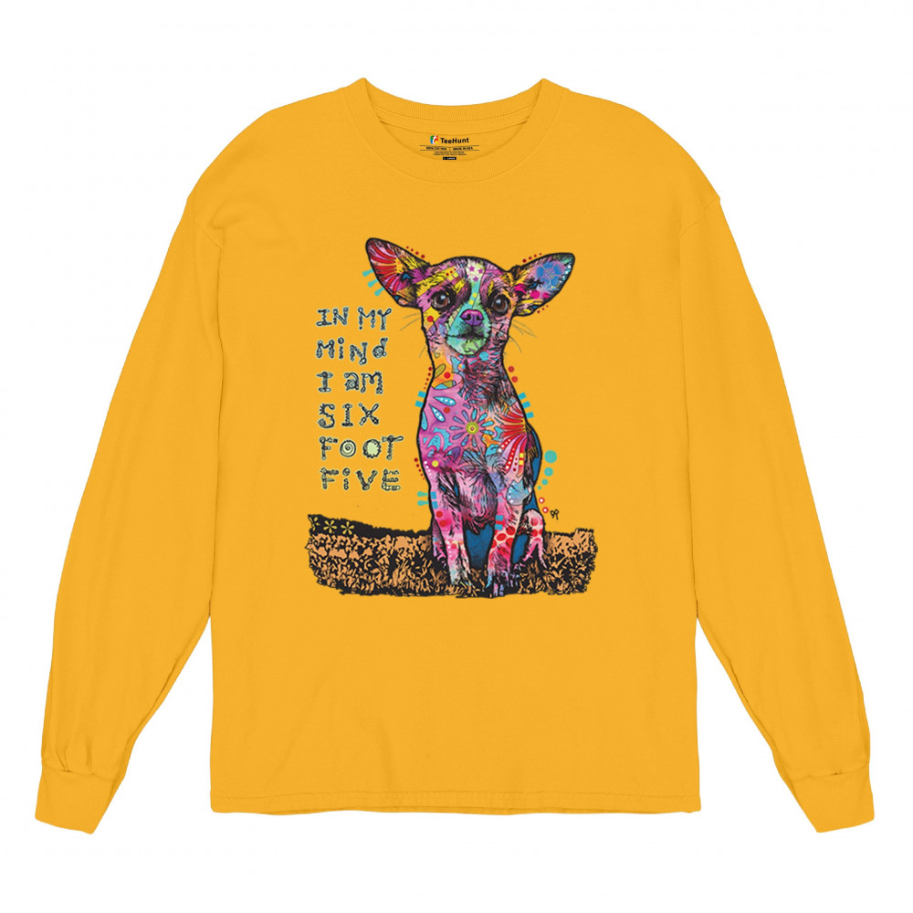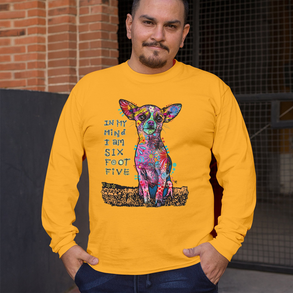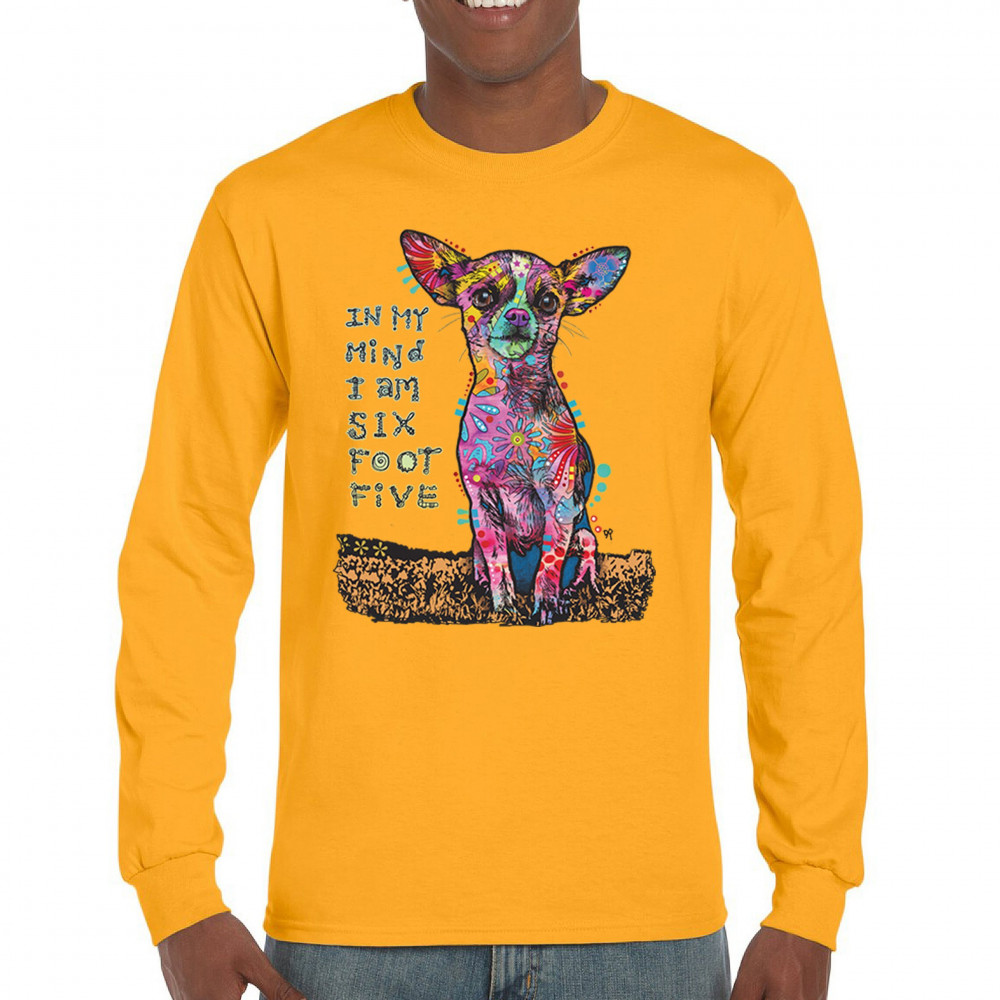 IN MY MIND I'M SIX FOOT FIVE long sleeve t-shirt dean russo funny chihuahua yellow