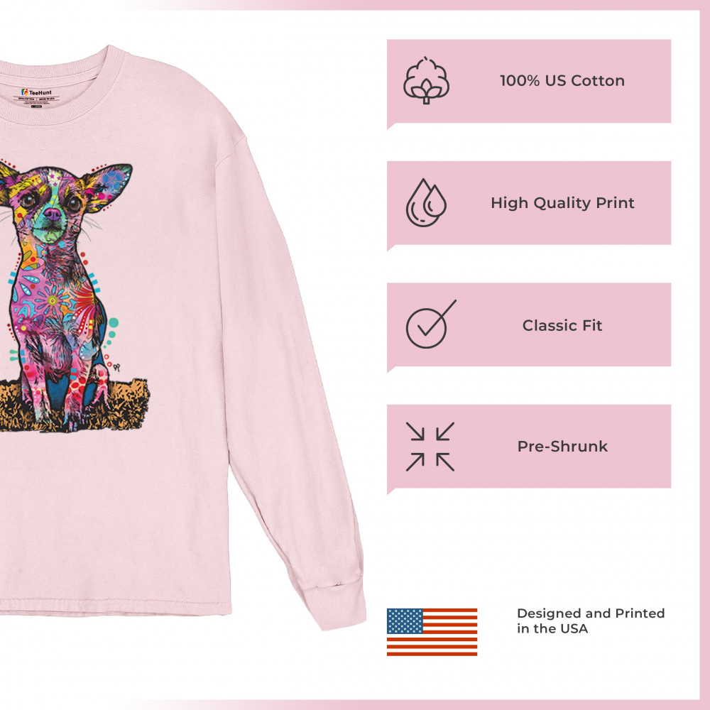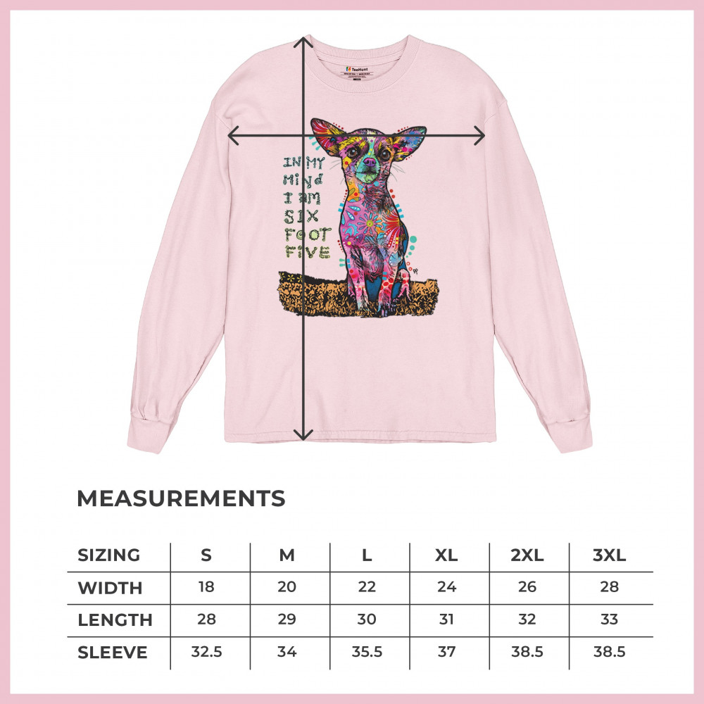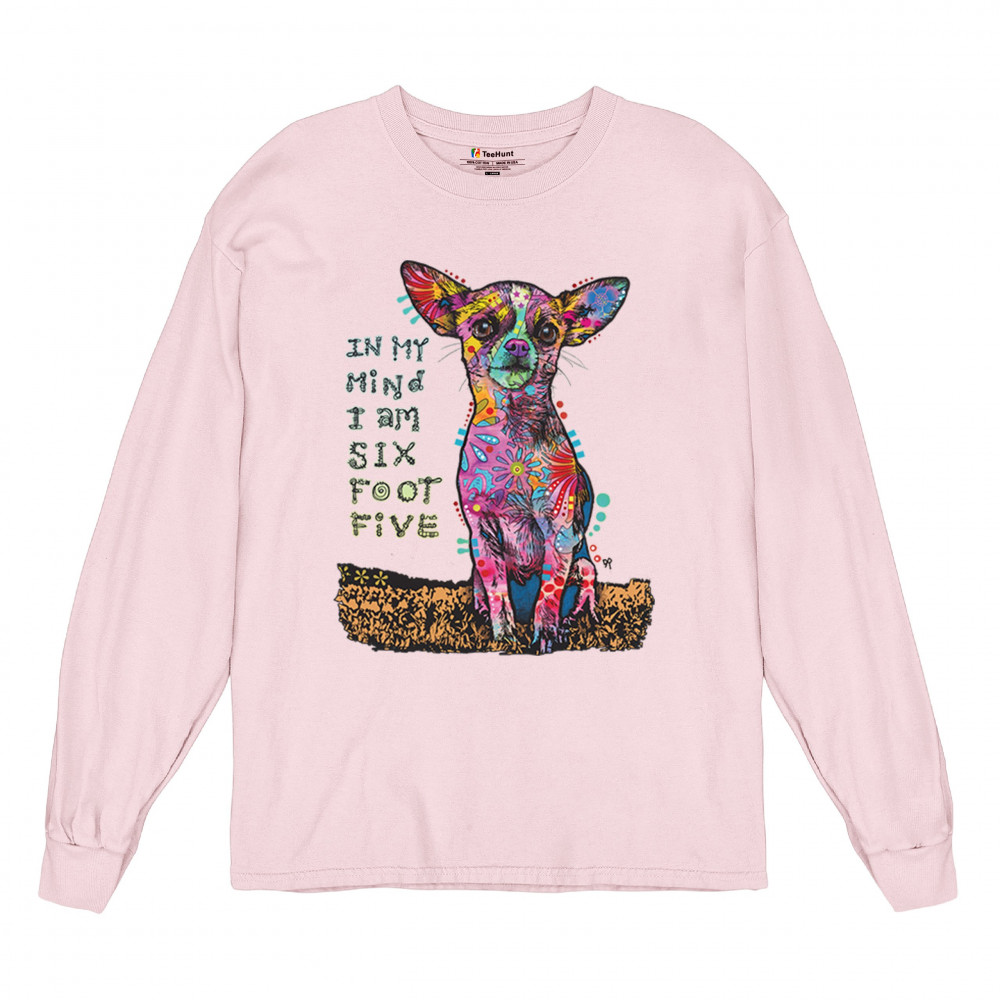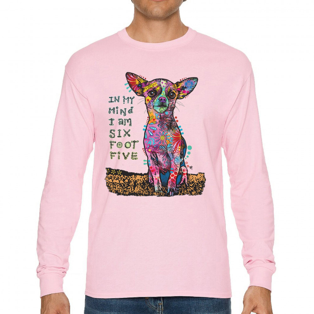 IN MY MIND I'M SIX FOOT FIVE long sleeve t-shirt dean russo funny chihuahua pink