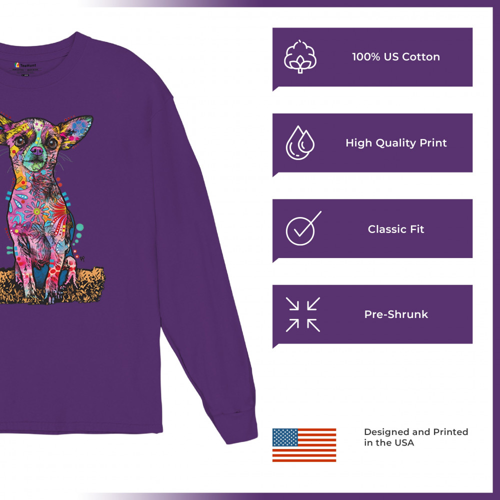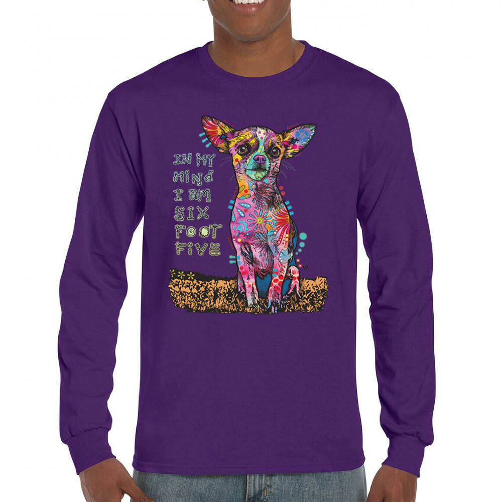 IN MY MIND I'M SIX FOOT FIVE long sleeve t-shirt dean russo funny chihuahua purple