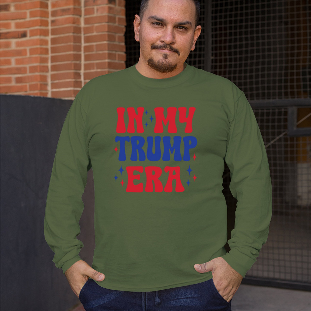 Declare your pride with this "In My Trump Era" design. Perfect for Trump supporters embracing America First, Republican values, and freedom.