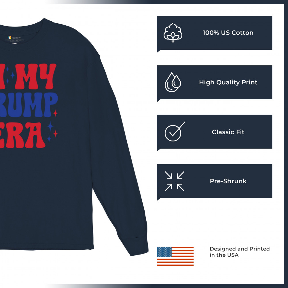 Declare your pride with this "In My Trump Era" design. Perfect for Trump supporters embracing America First, Republican values, and freedom.