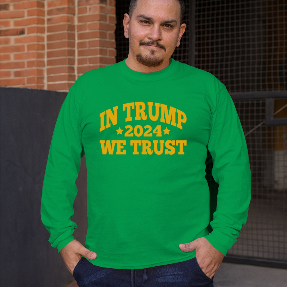 Show your unwavering trust in President Trump with our 'In Trump We Trust 2024' design. Perfect for proud supporters of America first. Join the movement.