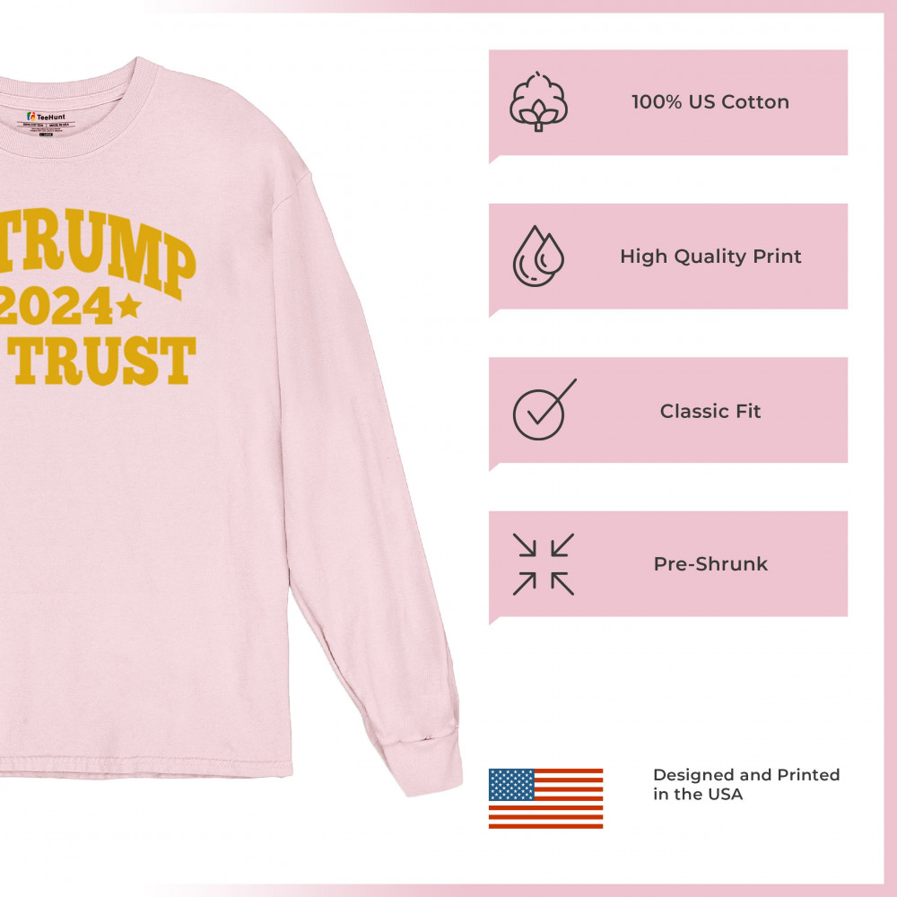 eclare your allegiance with our captivating 'In Trump We Trust 2024' design, representing the core values of America first and conservative principles. Embrace victory as a dedicated Trump supporter, riding the Republican train towards a brighter future. With trust in God, not in the deceitful government, stand strong against the rebelution of traitors. Let 'Let's Go Brandon' echo the spirit of every deplorable patriot who refuses to surrender. Fly the American flag high and wear your beliefs proudly.