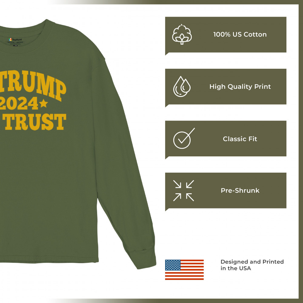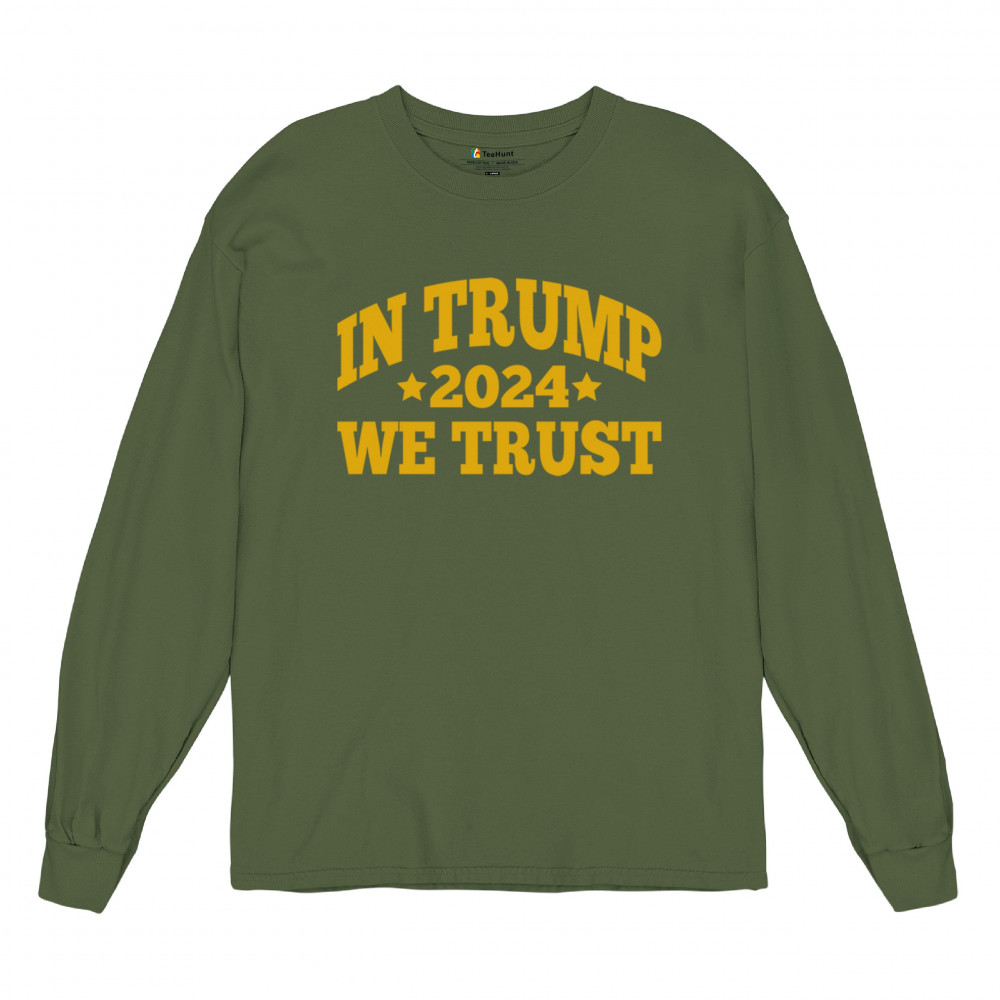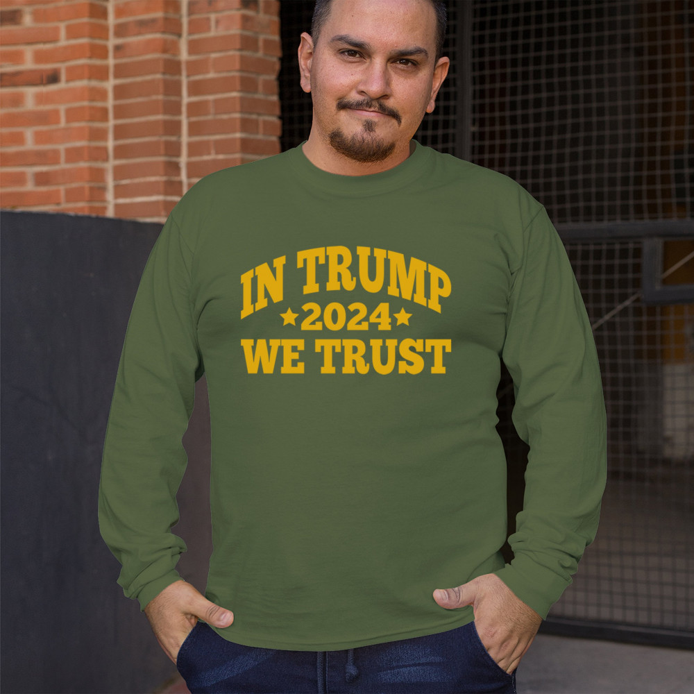 Show your unwavering trust in President Trump with our 'In Trump We Trust 2024' design. Perfect for proud supporters of America first. Join the movement.