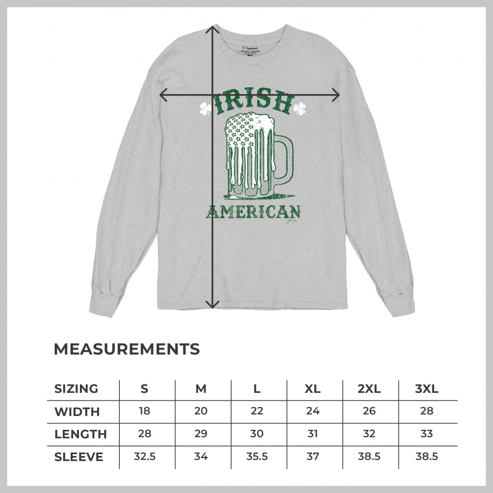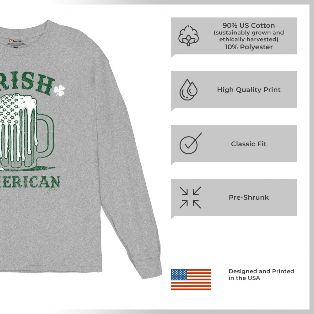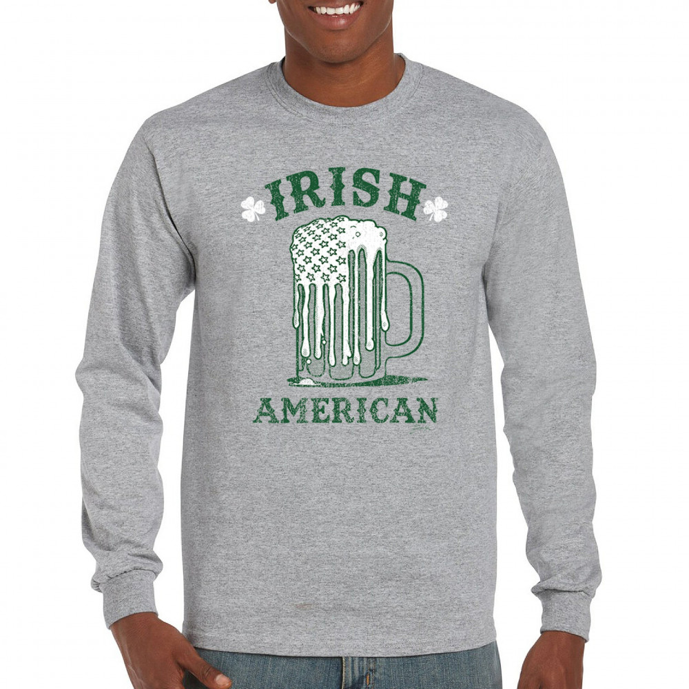 IRISH AMERICAN ST PATRICK'S DAY long sleeve t-shirt shamrock shenanigans beer gray