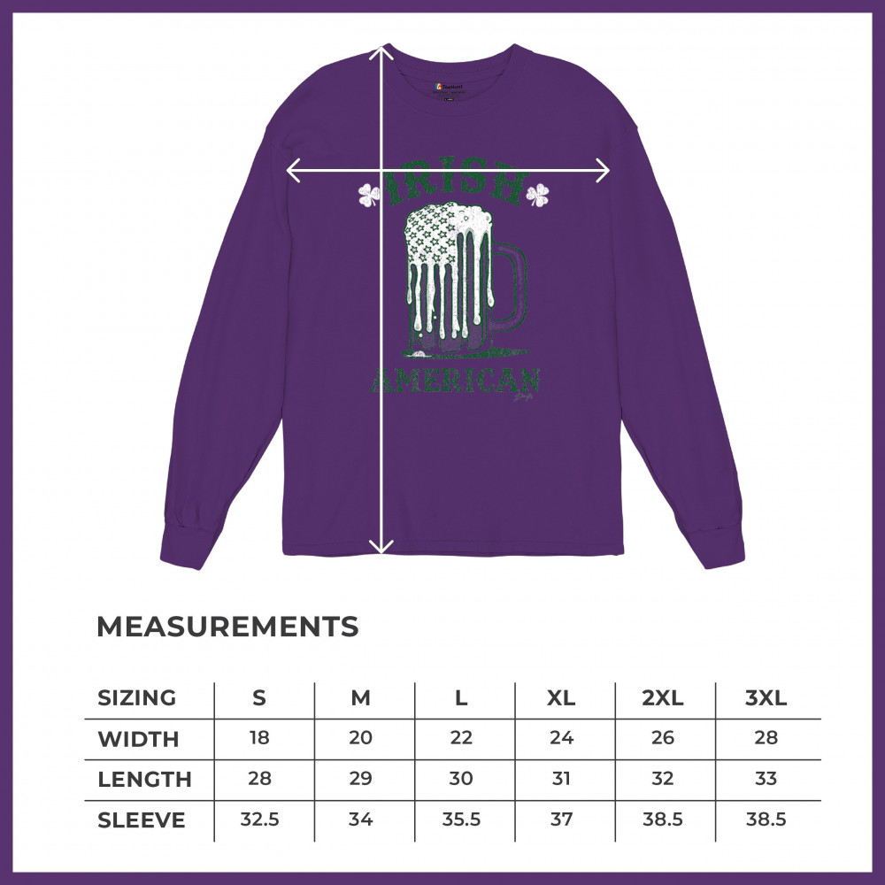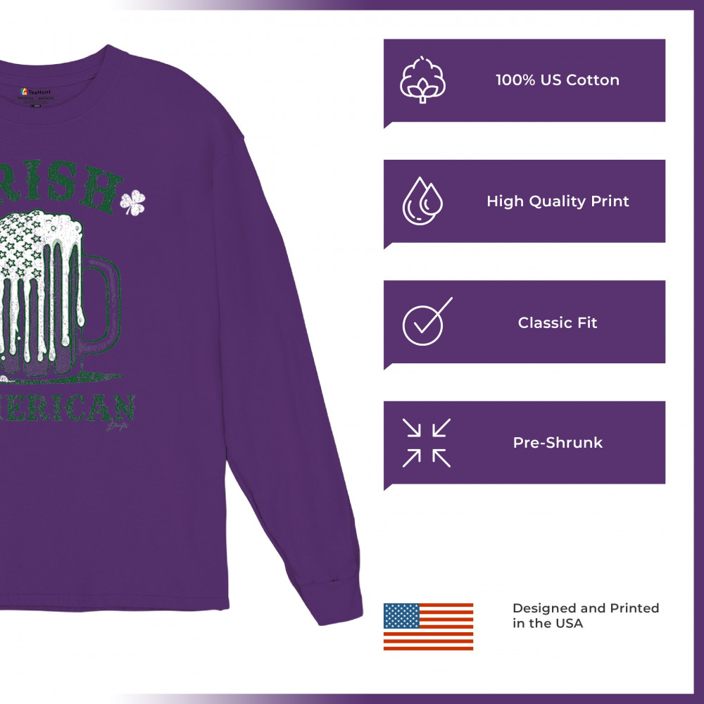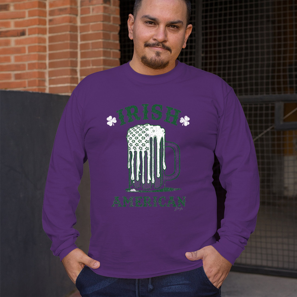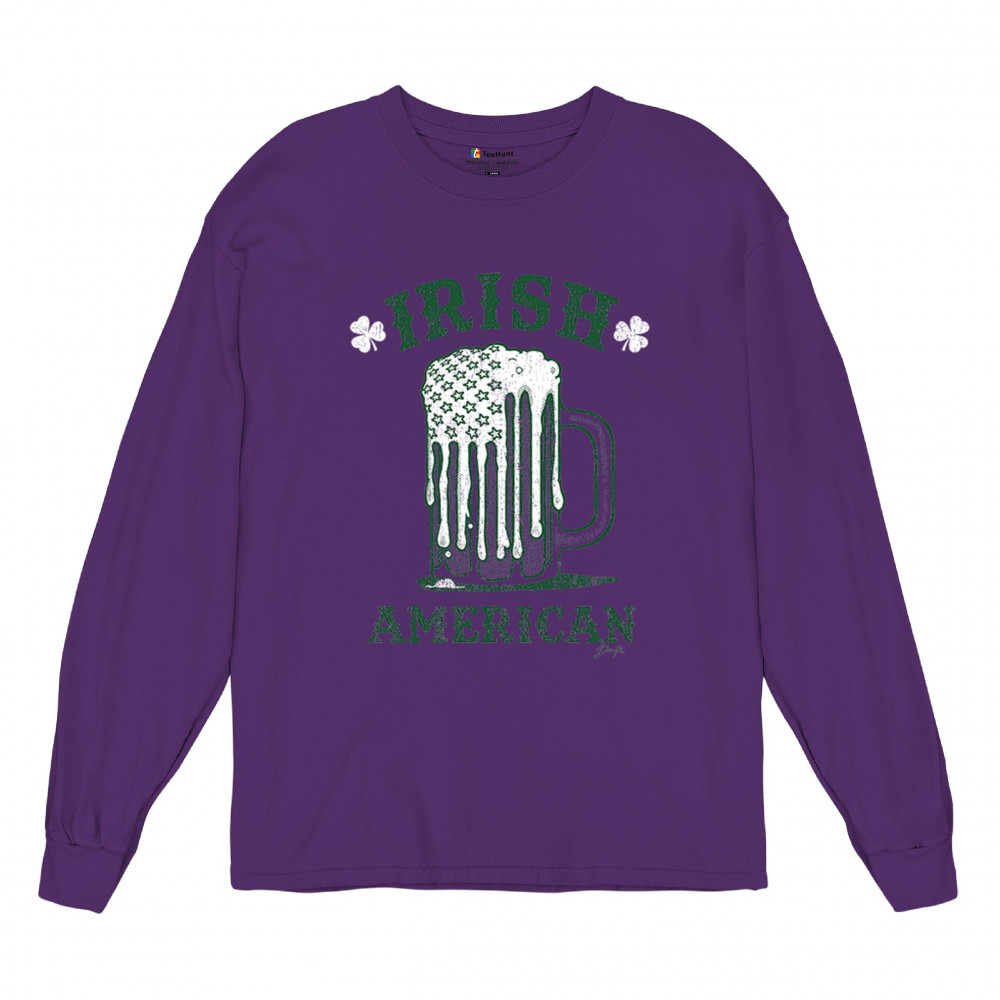 IRISH AMERICAN ST PATRICK'S DAY long sleeve t-shirt shamrock shenanigans beer purple