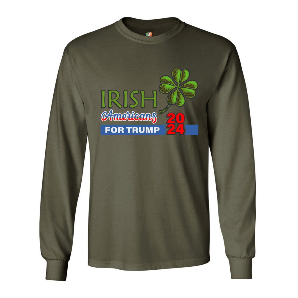 IRISH AMERICANS FOR TRUMP long sleeve t-shirt pro donald trump 2024 shamrock military green
