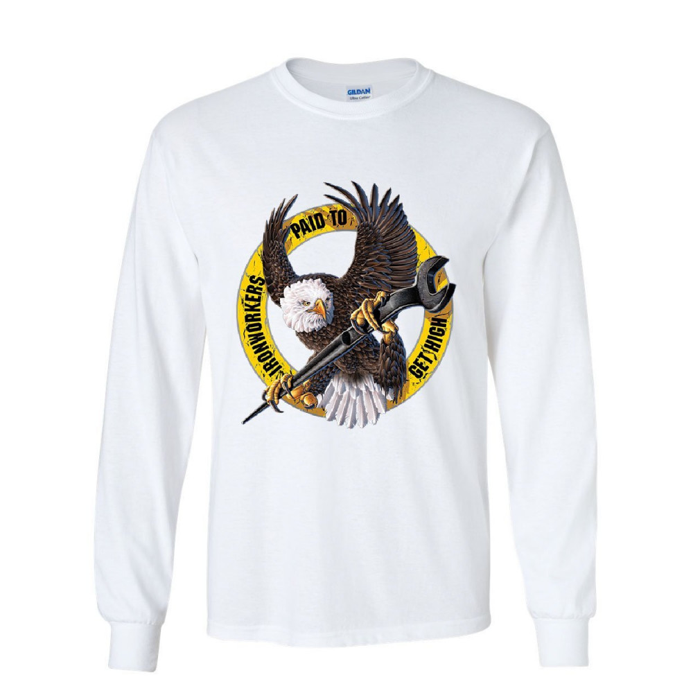 IRONWORKERS PAID TO GET HIGH long sleeve t-shirt construction workers union tee white