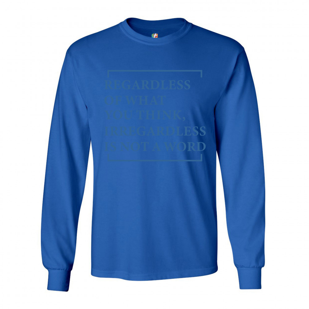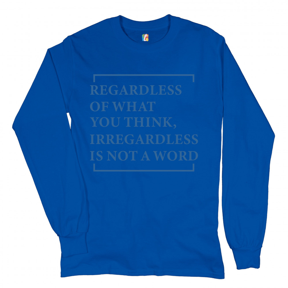 IRREGARDLESS IS NOT A WORD long sleeve t-shirt funny english grammar royal blue