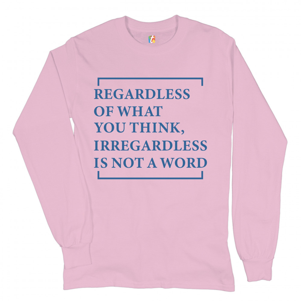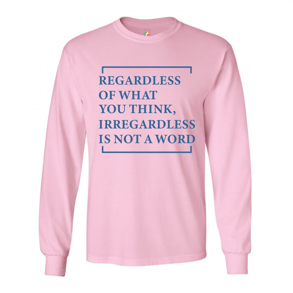 IRREGARDLESS IS NOT A WORD long sleeve t-shirt funny english grammar pink