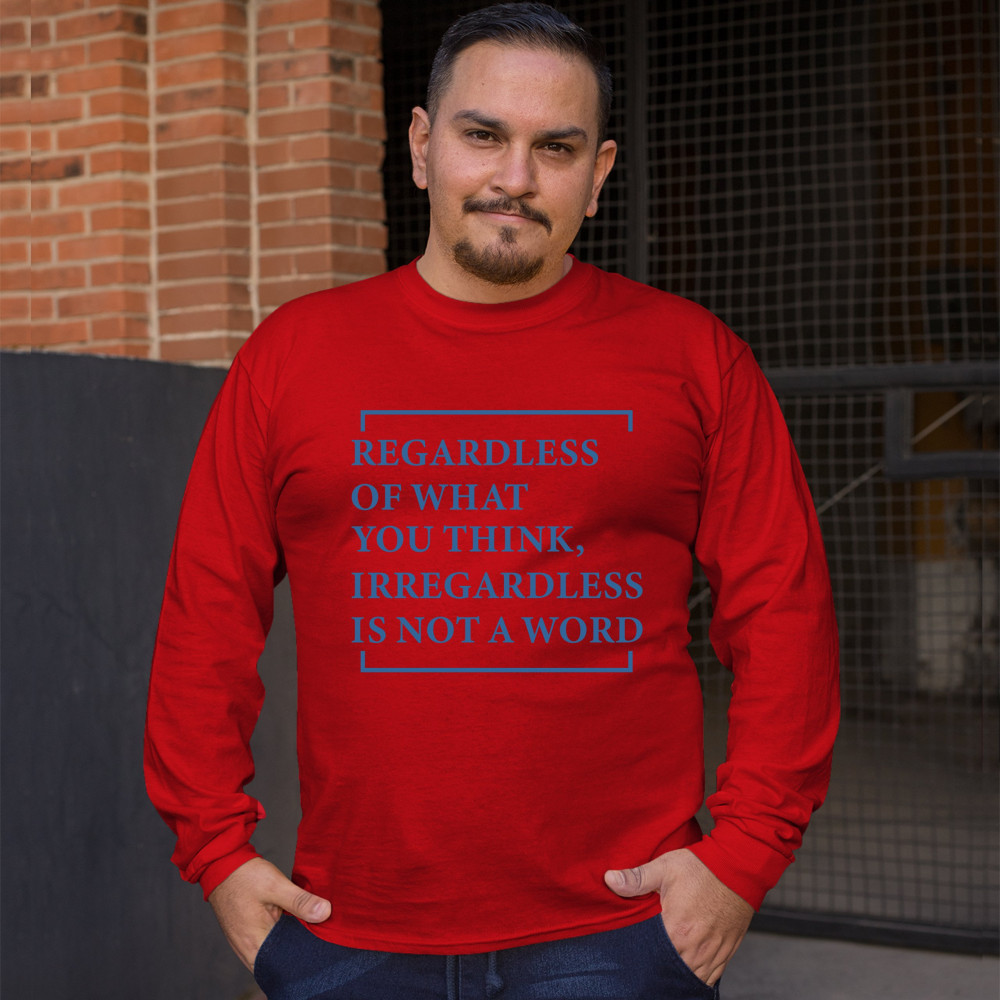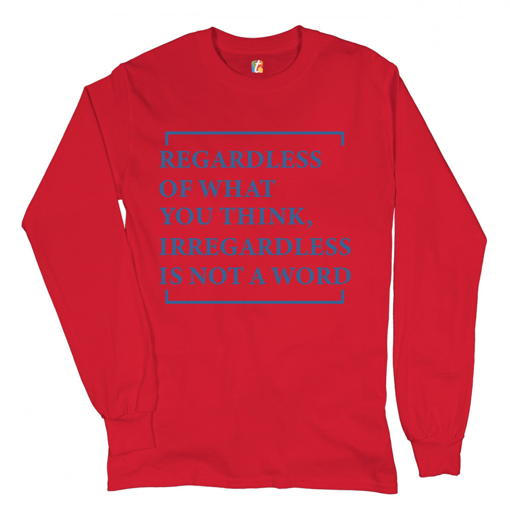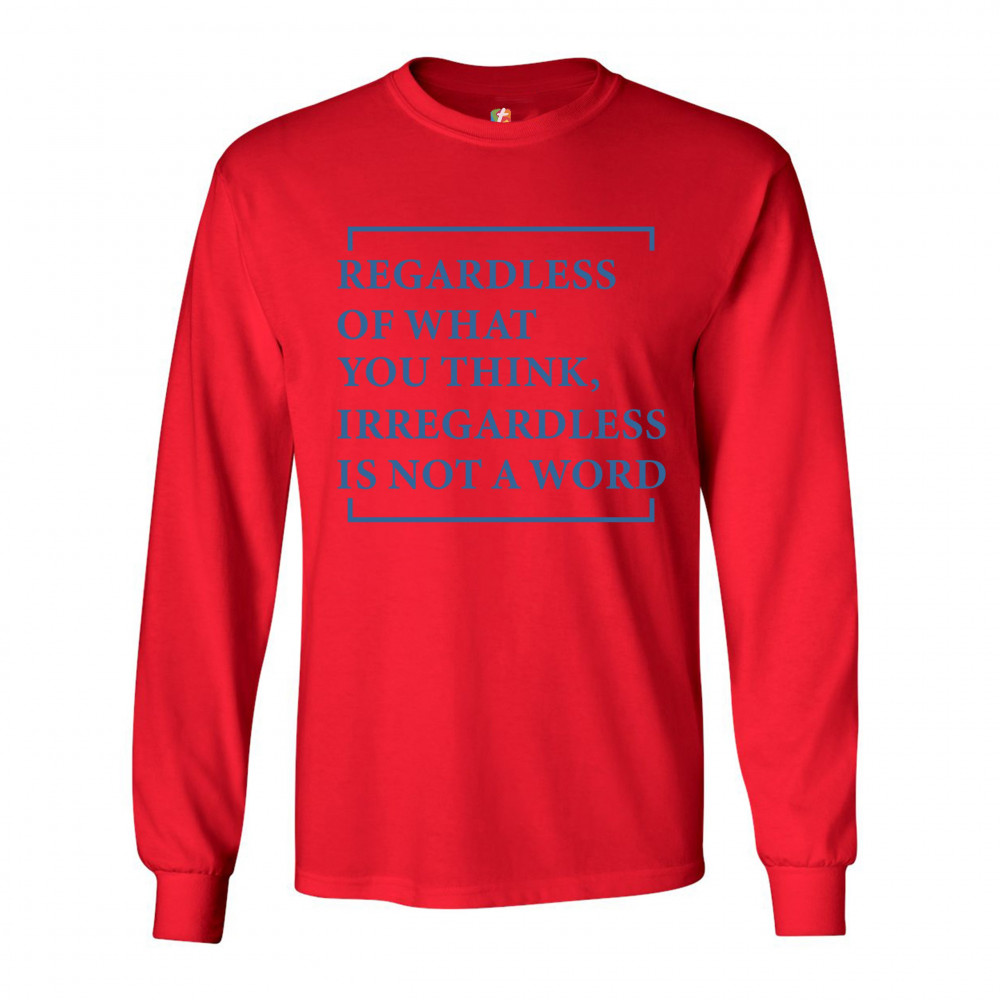 IRREGARDLESS IS NOT A WORD long sleeve t-shirt funny english grammar red