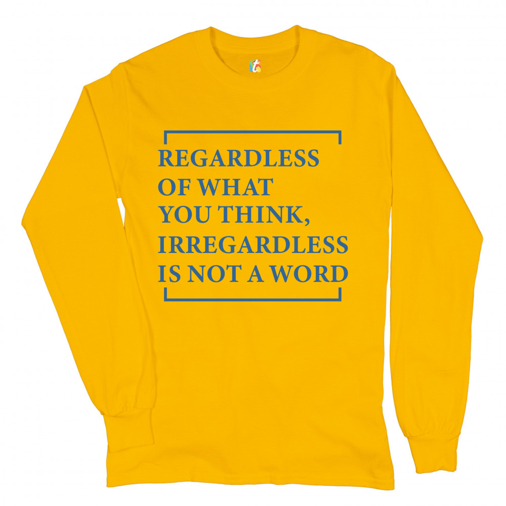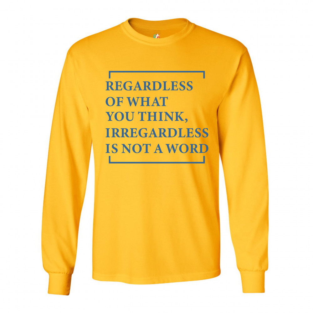 IRREGARDLESS IS NOT A WORD long sleeve t-shirt funny english grammar yellow