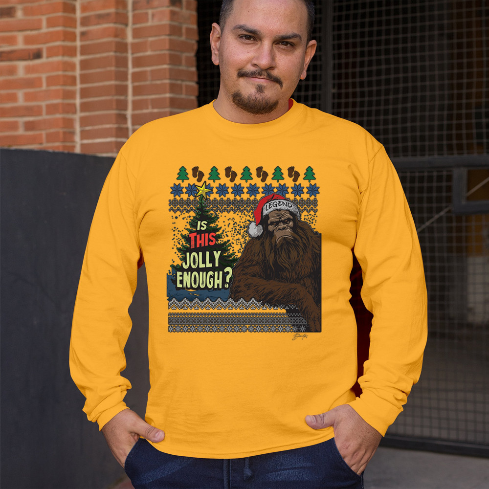 Add humor to your holiday season with the "Is This Jolly Enough?" design, featuring a legendary creature ready for Christmas cheer. Perfect for holiday gatherings and cozy winter nights!