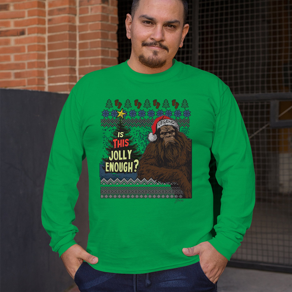 Add humor to your holiday season with the "Is This Jolly Enough?" design, featuring a legendary creature ready for Christmas cheer. Perfect for holiday gatherings and cozy winter nights!