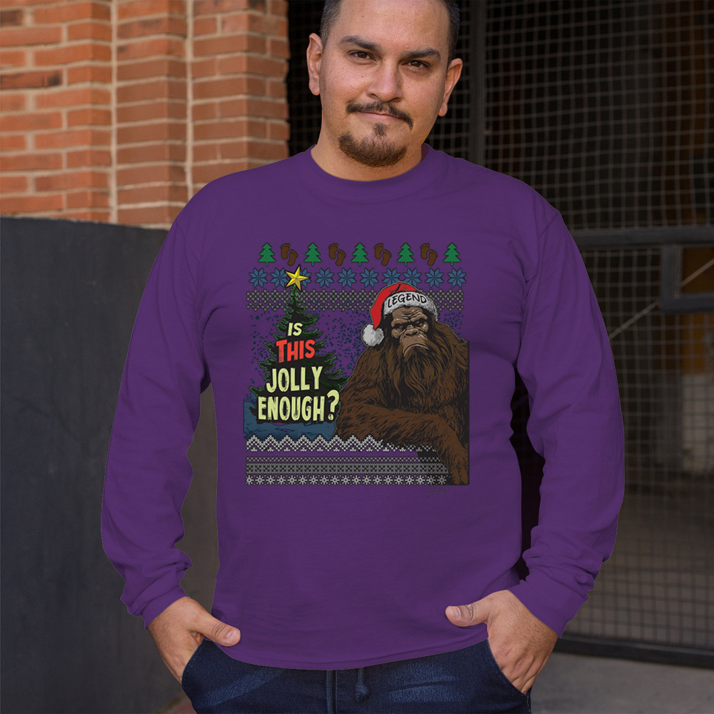 Add humor to your holiday season with the "Is This Jolly Enough?" design, featuring a legendary creature ready for Christmas cheer. Perfect for holiday gatherings and cozy winter nights!