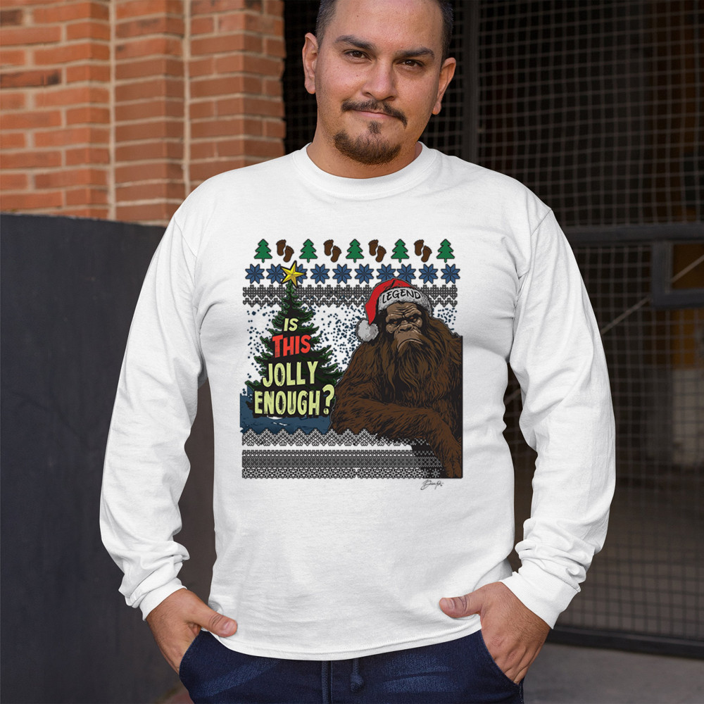 Add humor to your holiday season with the "Is This Jolly Enough?" design, featuring a legendary creature ready for Christmas cheer. Perfect for holiday gatherings and cozy winter nights!