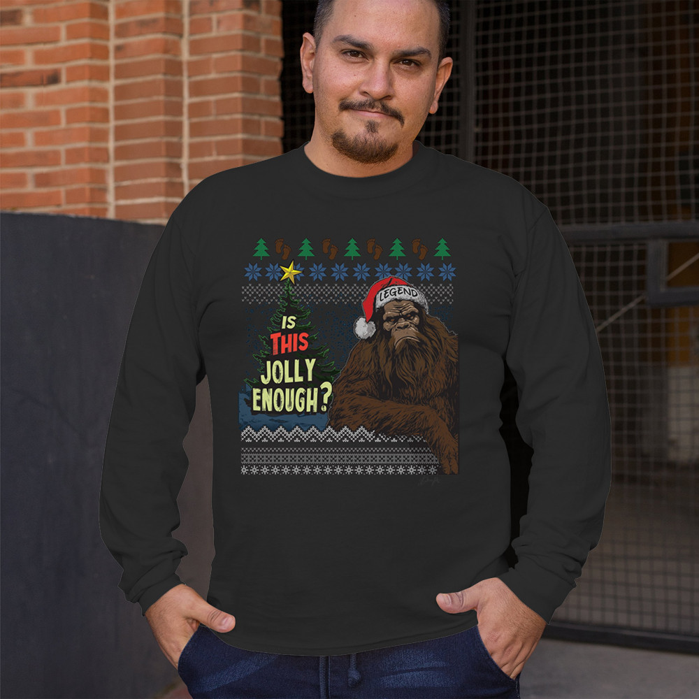 Add humor to your holiday season with the "Is This Jolly Enough?" design, featuring a legendary creature ready for Christmas cheer. Perfect for holiday gatherings and cozy winter nights!