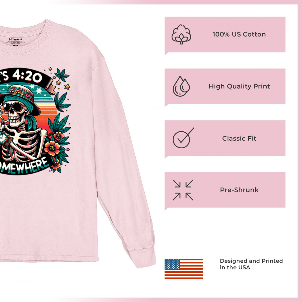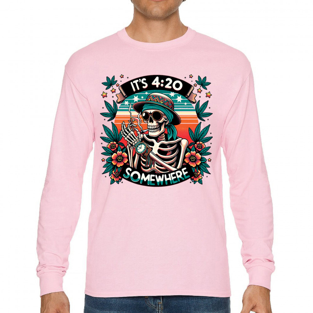 Get lifted with this “It’s 4:20 Somewhere†design featuring a joint-smoking skeleton, tropical sunset, and Deadhead stoner vibes. With bold trippy colors and beachy weed art, this tee is perfect for April 20 parties, summer festivals, and cannabis lovers living the high life.