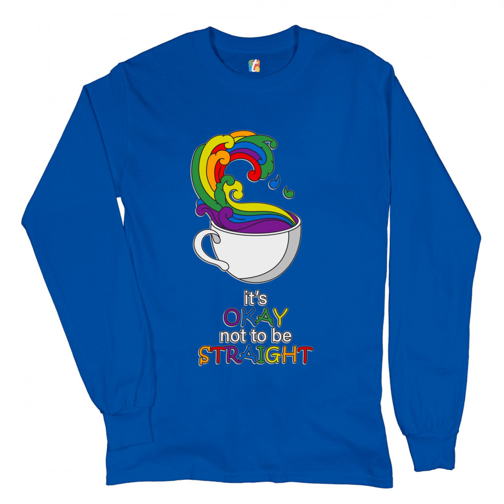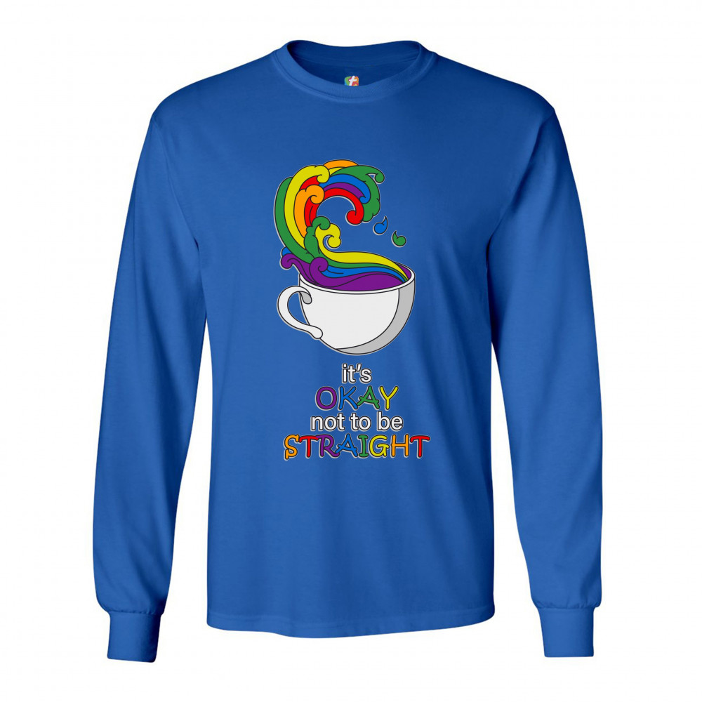 IT'S OKAY NOT TO BE STRAIGHT long sleeve t-shirt gay acceptance lgbtq pride royal blue