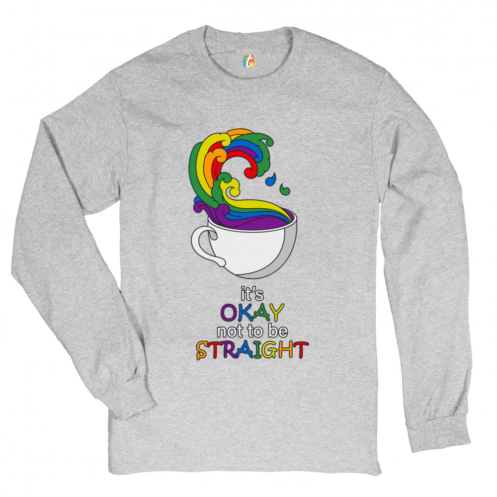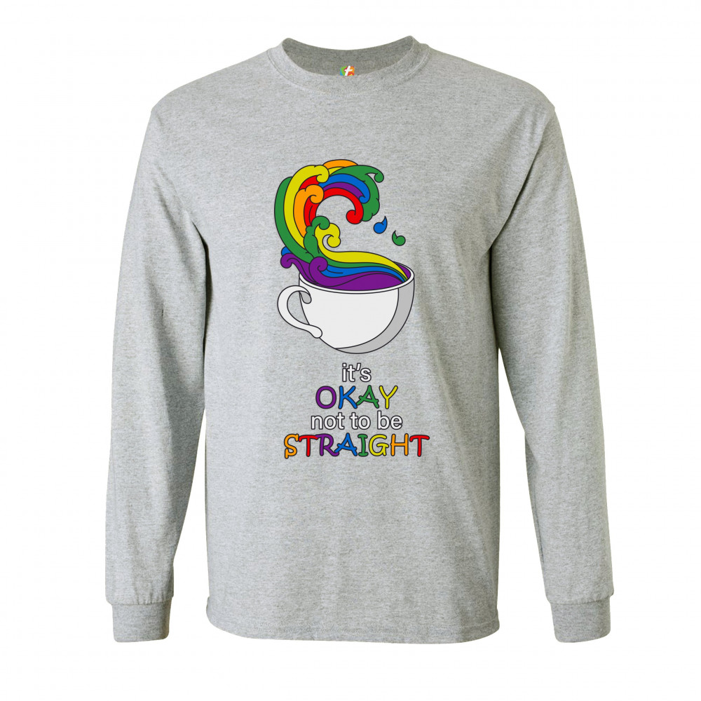 IT'S OKAY NOT TO BE STRAIGHT long sleeve t-shirt gay acceptance lgbtq pride gray
