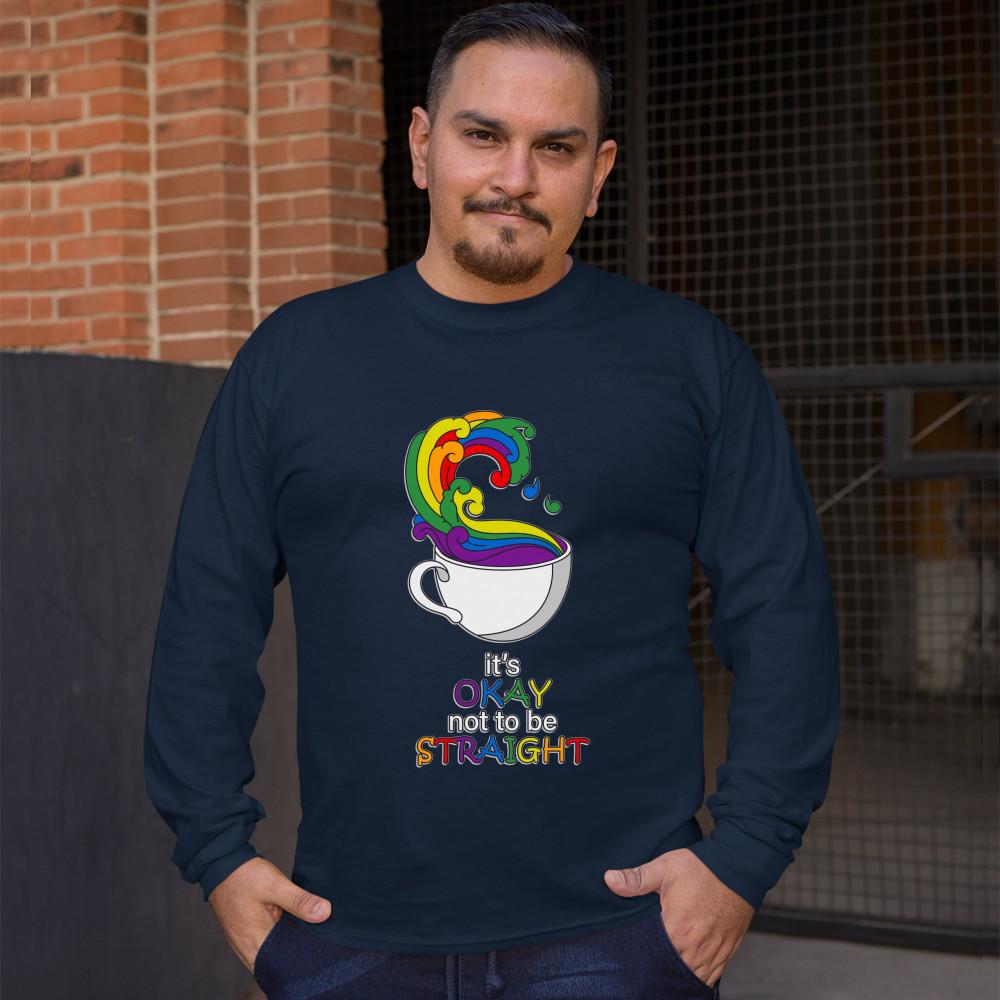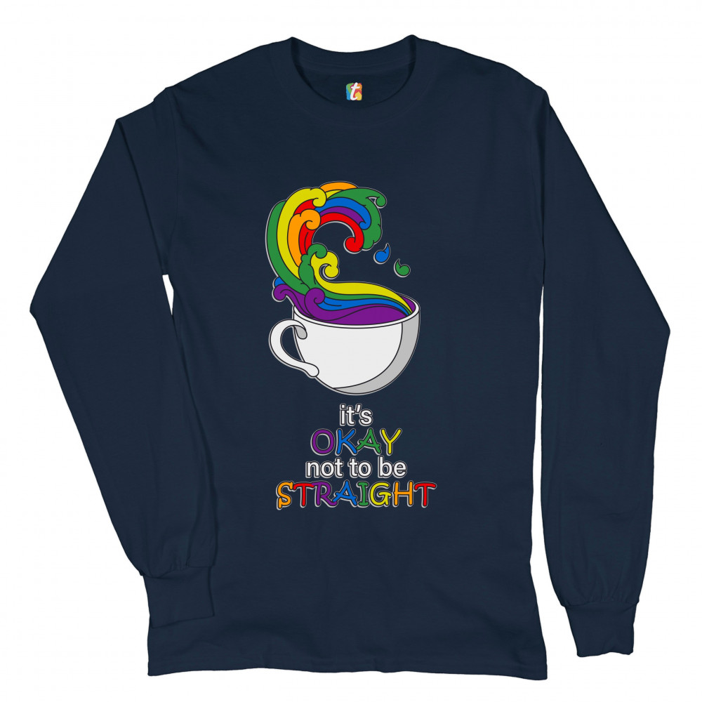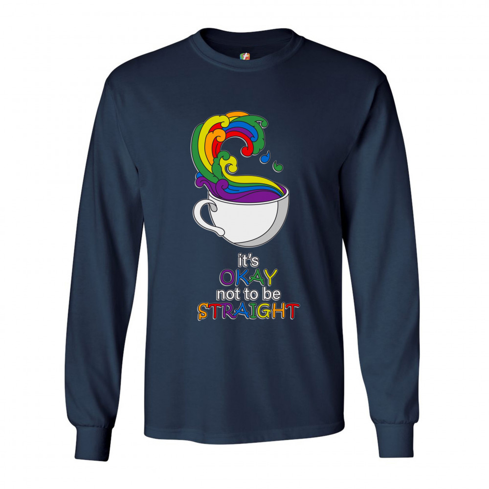 IT'S OKAY NOT TO BE STRAIGHT long sleeve t-shirt gay acceptance lgbtq pride navy blue