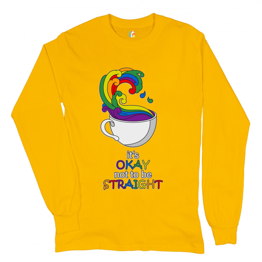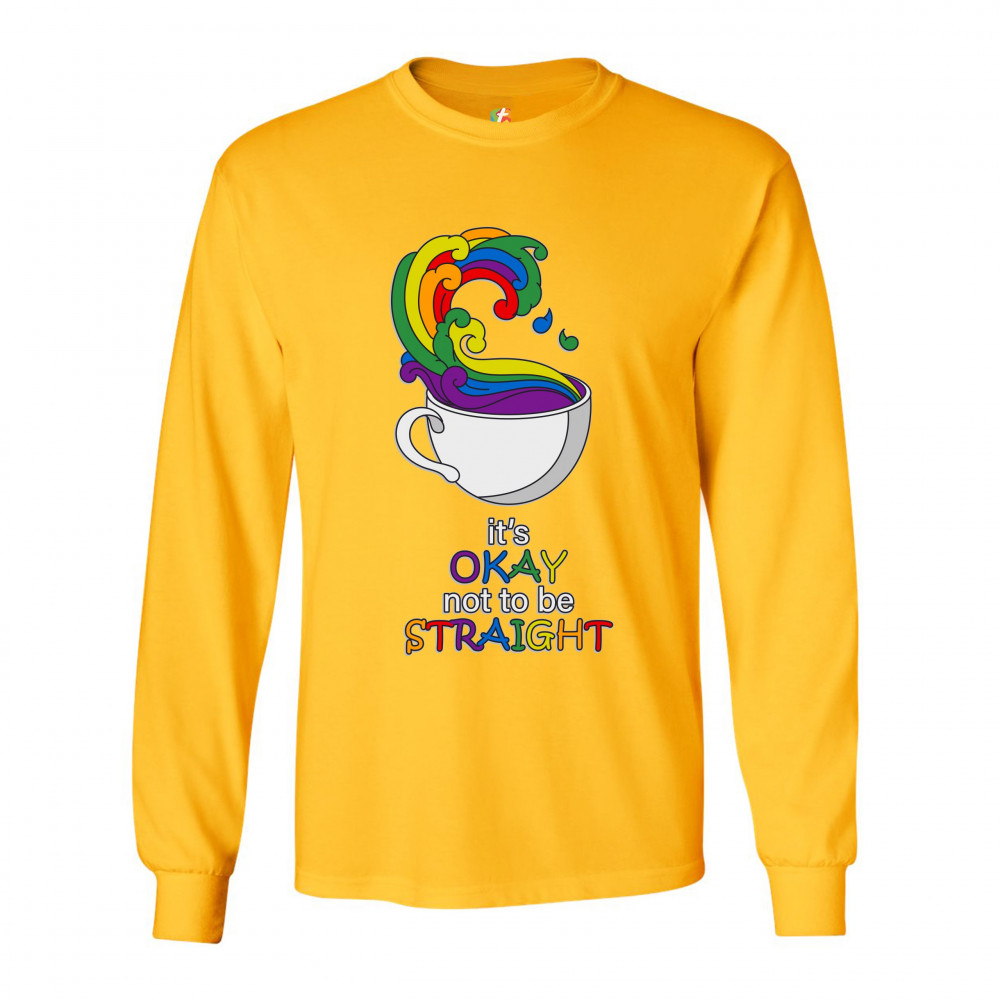IT'S OKAY NOT TO BE STRAIGHT long sleeve t-shirt gay acceptance lgbtq pride yellow