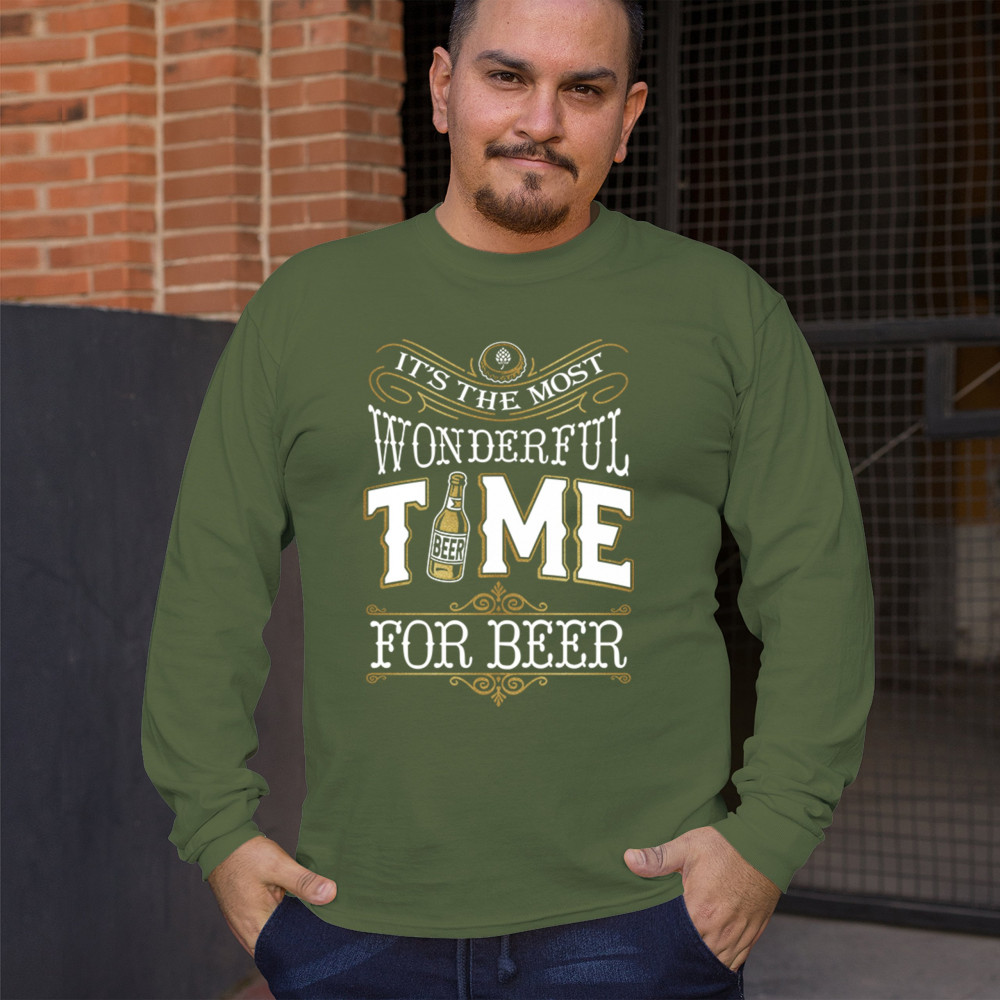 Bring some holiday cheer to your wardrobe with our "It's The Most Wonderful Time for Beer" design. Featuring a festive beer bottle and playful text, this design is perfect for adding humor to holiday gatherings, beer festivals, or any casual outing. Ideal for beer lovers and brew enthusiasts, it makes a fantastic gift for those who appreciate beer-themed fun. Embrace the season and your love for beer with this delightful and humorous design!