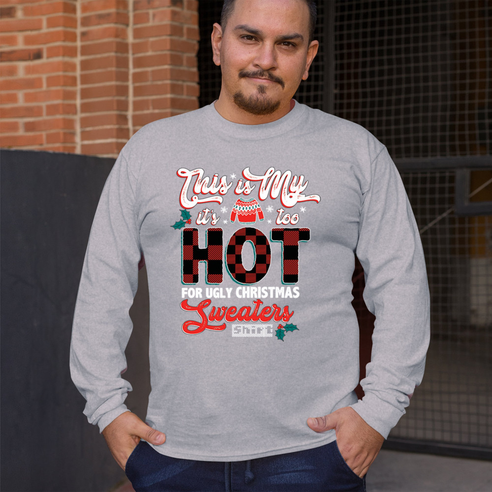Stay festive without the extra warmth! This "Too Hot for Ugly Christmas Sweaters" shirt is perfect for those who love Christmas cheer with a lighthearted touch.