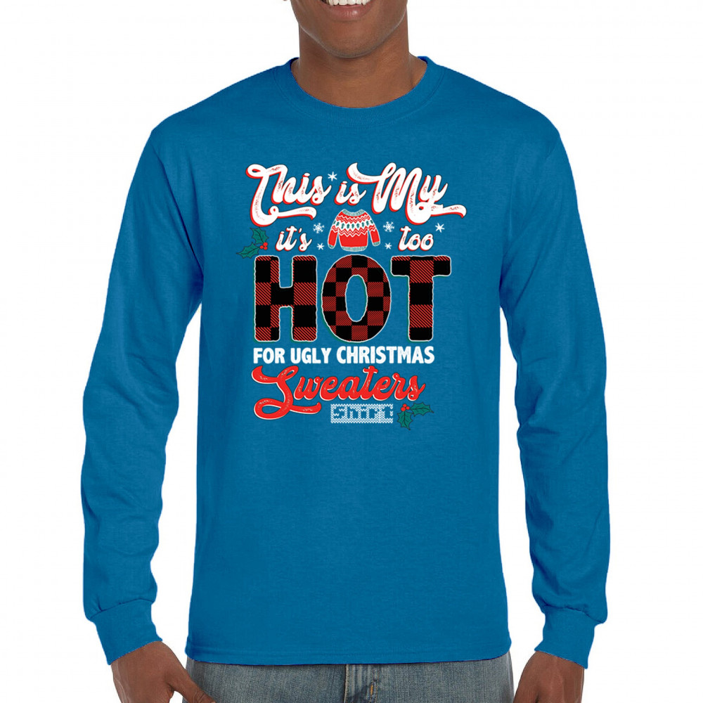 Stay festive without the extra warmth! This "Too Hot for Ugly Christmas Sweaters" shirt is perfect for those who love Christmas cheer with a lighthearted touch.