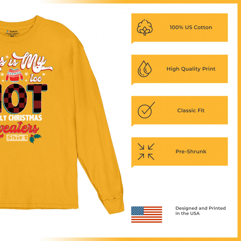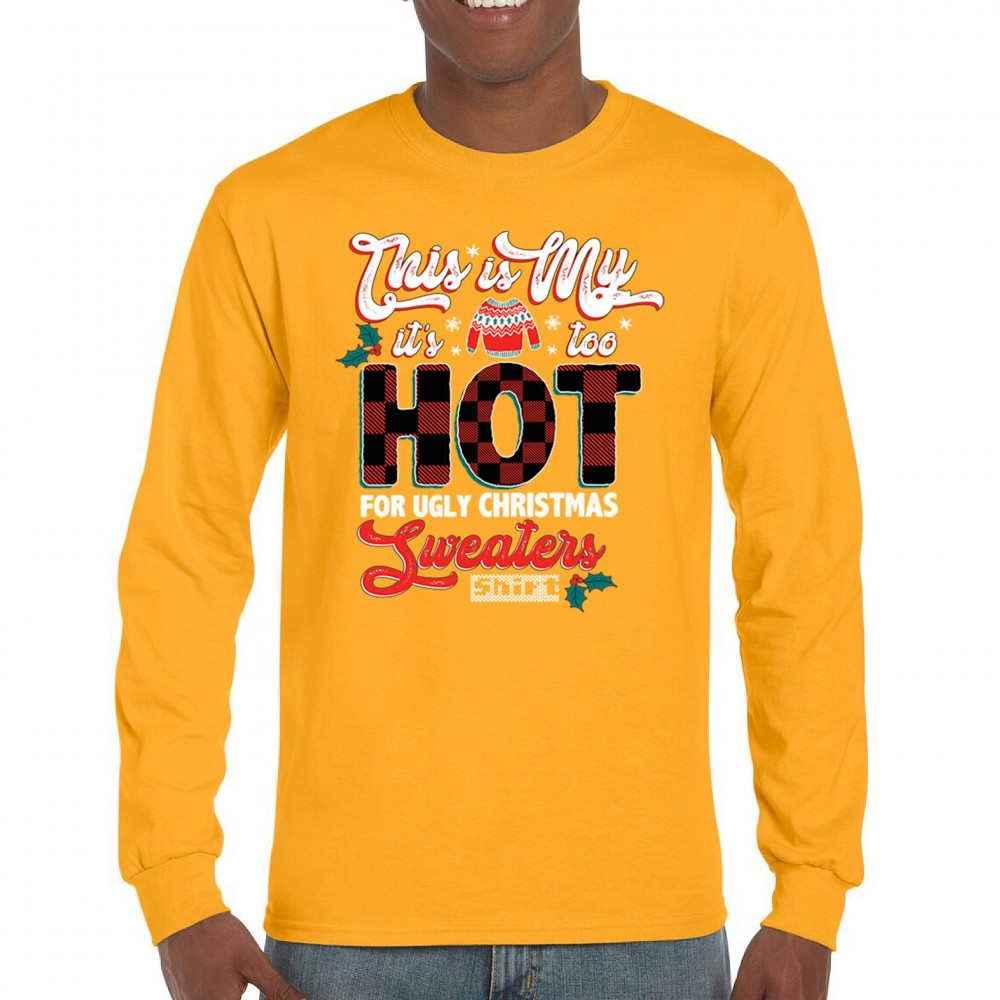 Stay festive without the extra warmth! This "Too Hot for Ugly Christmas Sweaters" shirt is perfect for those who love Christmas cheer with a lighthearted touch.