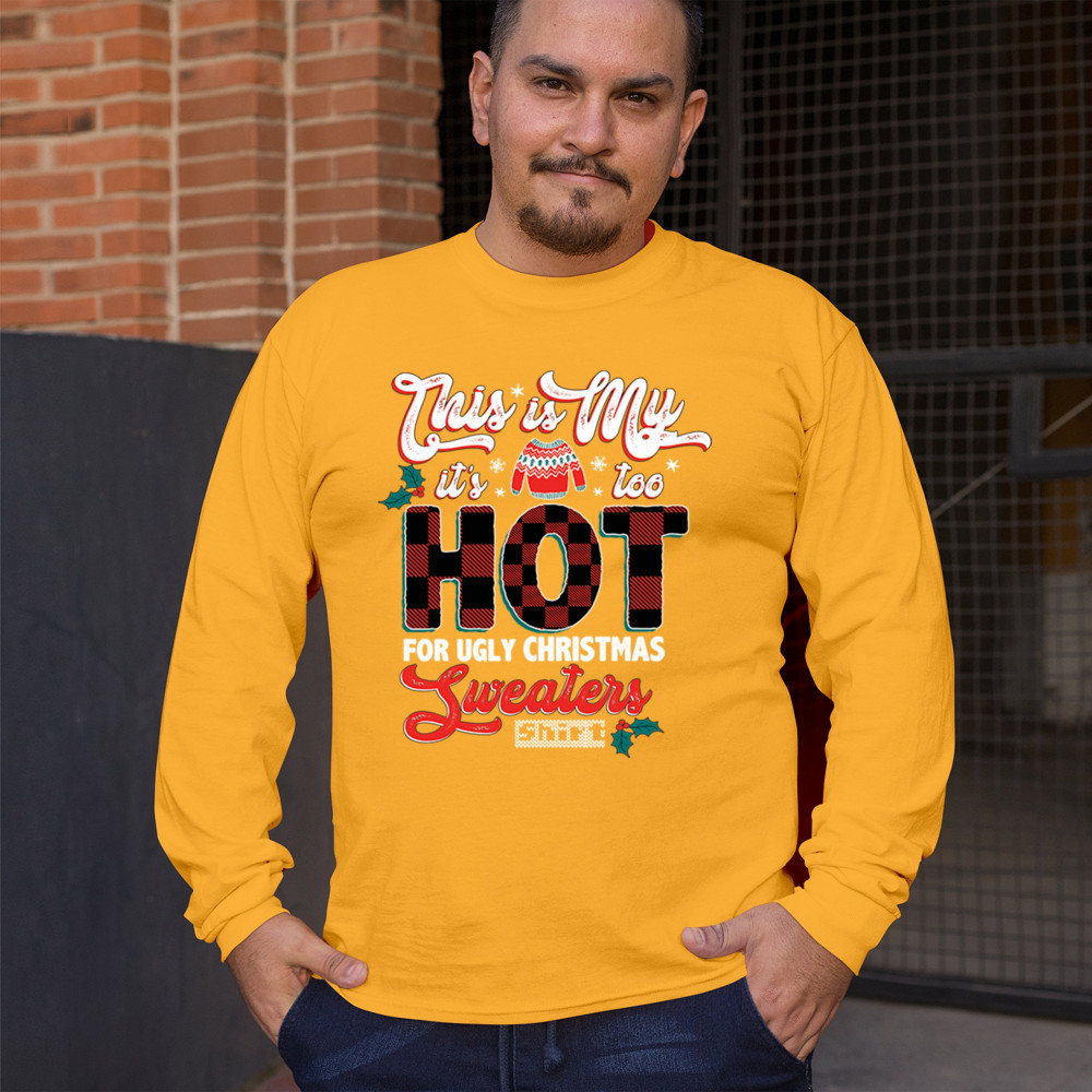 This "Too Hot for Ugly Christmas Sweaters" shirt is a festive twist on holiday attire for those who prefer something lighter than the classic sweater. Featuring bold plaid accents and playful holiday motifs, this design brings cheer without the extra layers. Ideal for Secret Santa, cozy gatherings, and all holiday celebrations, it’s a perfect choice for anyone looking to embrace Christmas fun with a touch of humor and style. Spread the holiday joy with this warm-hearted, lightweight option!