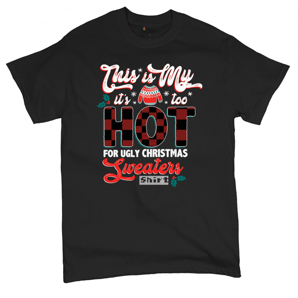 Stay festive without the extra warmth! This "Too Hot for Ugly Christmas Sweaters" shirt is perfect for those who love Christmas cheer with a lighthearted touch.
